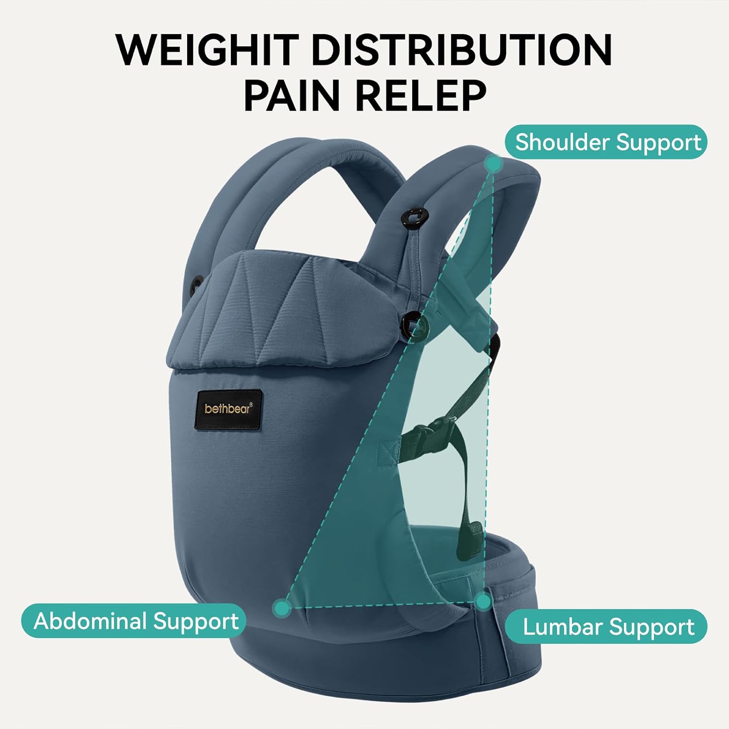 - Thoughtful X-shaped Back Design:BethBear Baby Carrier employs a revolutionary X-shaped back design. This forward-looking feature distributes weight better and evenly for unrivaled comfort for both you and your little one.