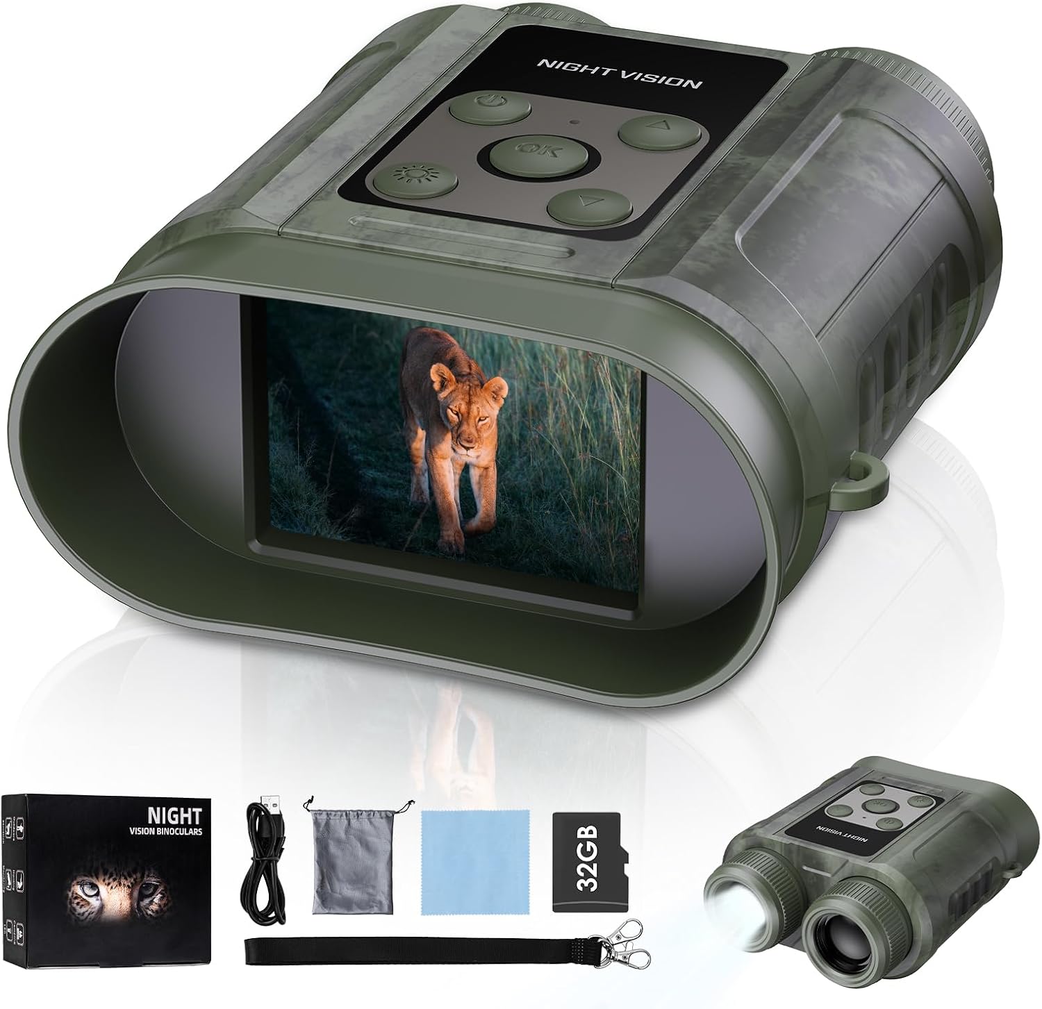 Night Vision Goggles,Compact Night Vision Binoculars,32GB Card Included, Photo/Video Capture,Outdoor Tools for Education, Wildlife Watching,Gifts for Boy, Gifts for Men, Gifts for Father(Green)