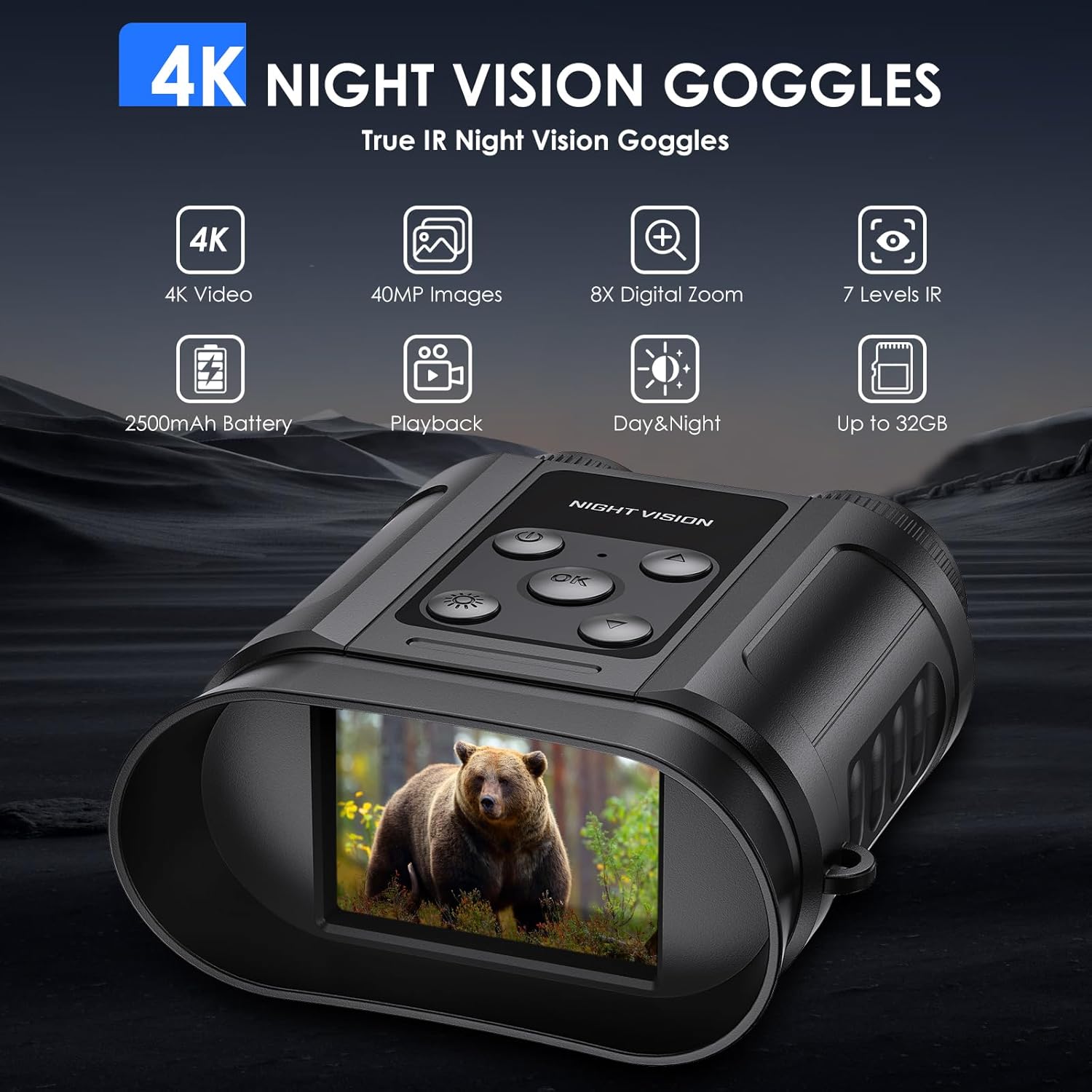 Night Vision Goggles,Compact Night Vision Binoculars,32GB Card Included, Photo/Video Capture,Outdoor Tools for Education, Wildlife Watching,Gifts for Boy, Gifts for Men, Gifts for Father (Black)