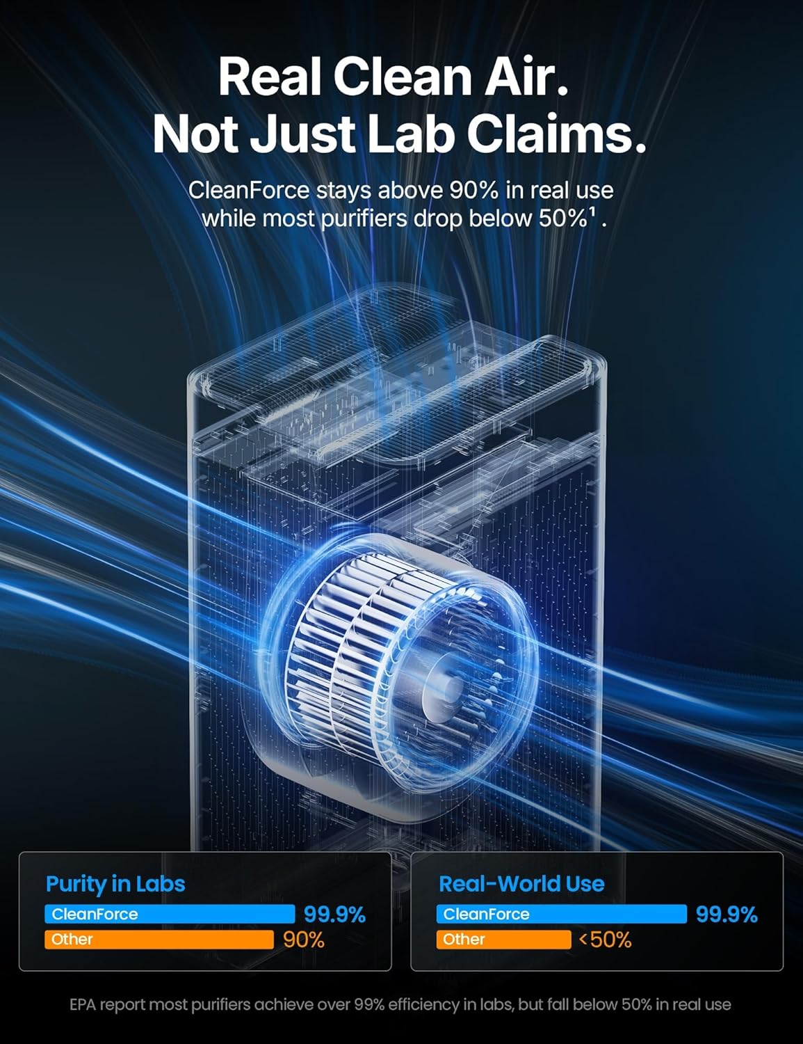 CleanForce Extra large Air Purifier for home large room, covers 3000 ft², H13 True HEPA Filter, Filters 99.97% Dust, Smoke, Odor, Pollen, VOCs, for home, office, classroom | MEGA1000 New Edition