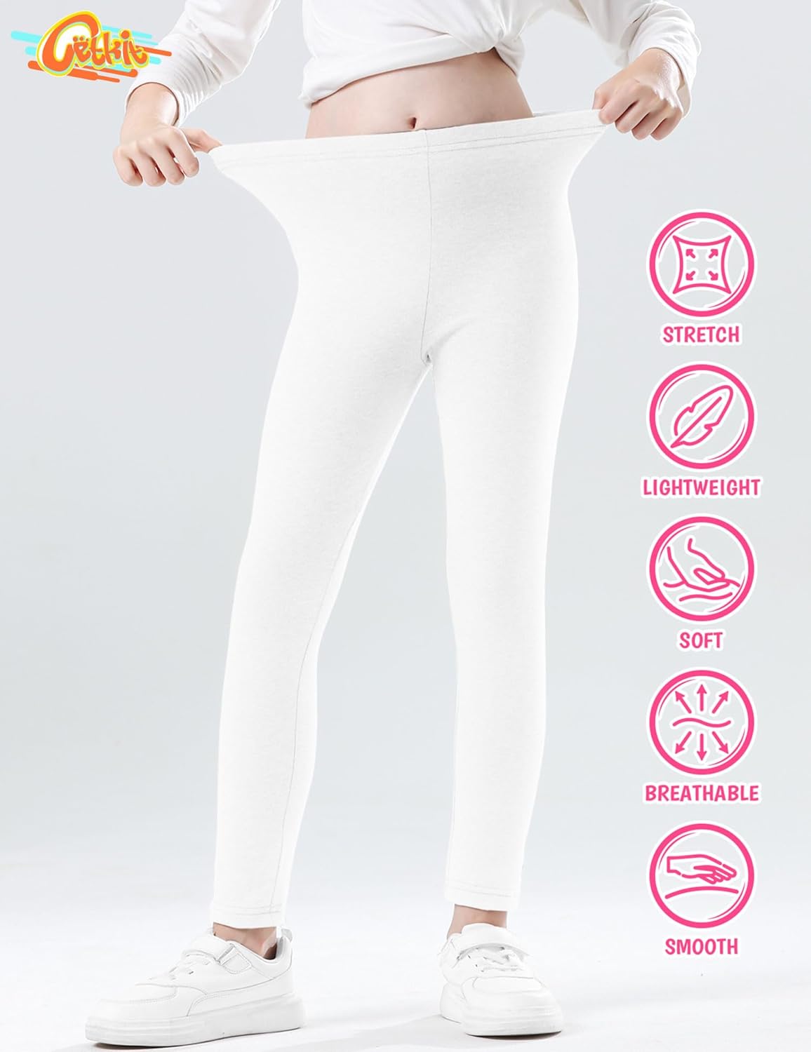 - 【High-Quality Leggings for Kids】 These girls' leggings are made of 94% polyester and 6% spandex. The fabric is stretchy, ultra-soft, and breathable, making these workout leggingsvery comfortable and flexible. All leggings are made from premium four-way stretch fabric, with an elastic band sewn into the waistband, which lies flat on the waist for a comfortable and good fit.