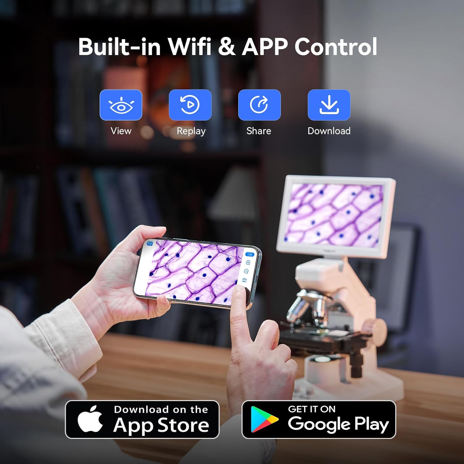 TOMLOV DM301 Max Microscope for Kids Students Adults with X-Y Stage, Digital Microscope Camera with 7" Screen, USB & HDMI Output, Wireless Biological Lab Scope for School Home Education with Slides