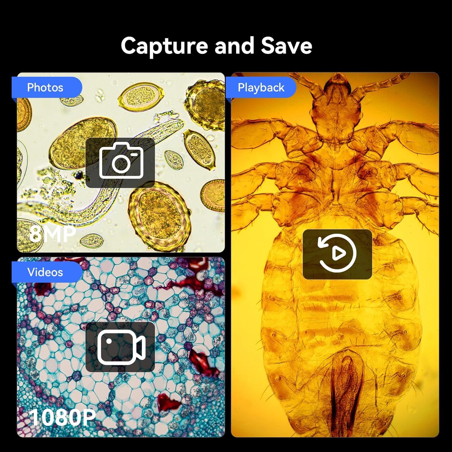 - Record Science in Motion with Clarity: With built-in 8MP imaging and 1080P video, you can capture scientific moments like swimming microorganisms—delivering far more than a typical kids' microscope by blending learning with hands-on recording
