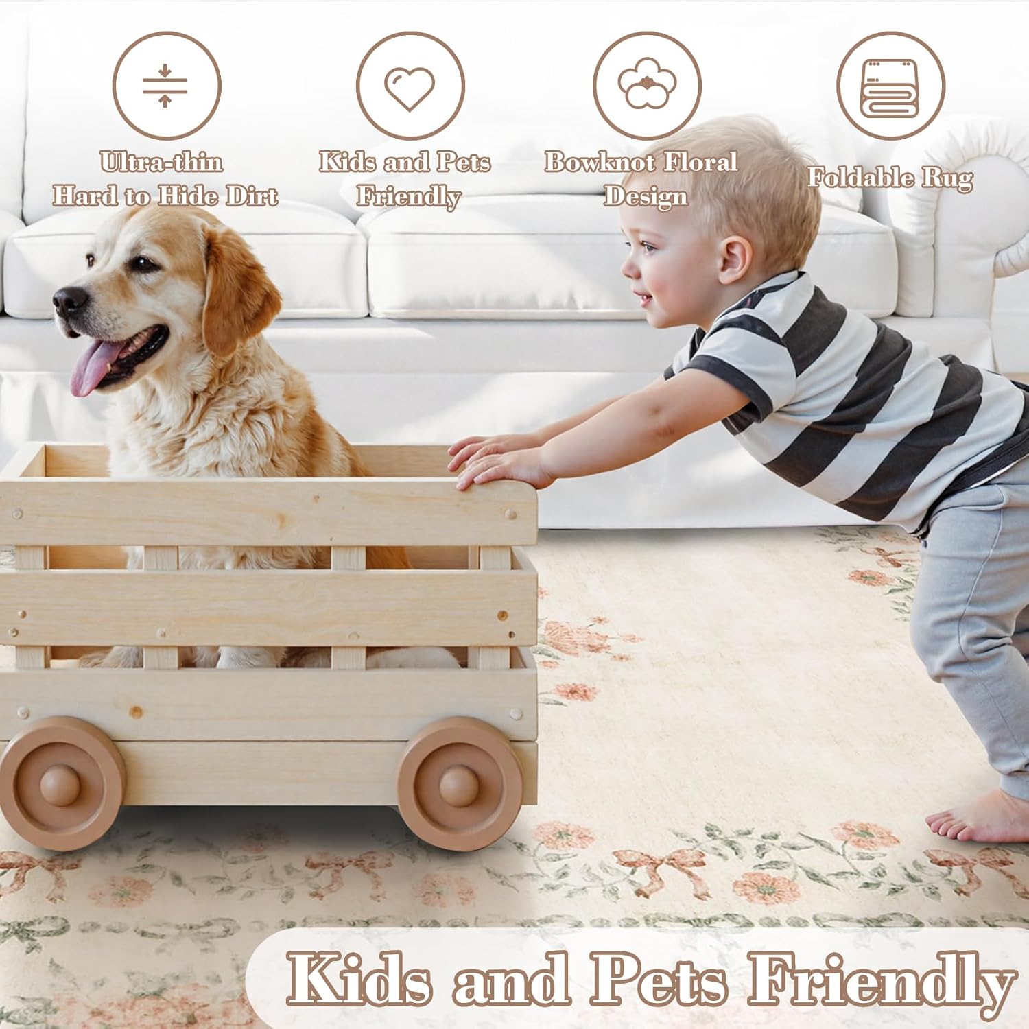 - Kids & Pets Friendly: This soft rugs for nursey is suitable for baby and pets to play on. The kids room rug won't collect hair or dirt, and it can be easily washed to remove stains and keep the room carpet looking great