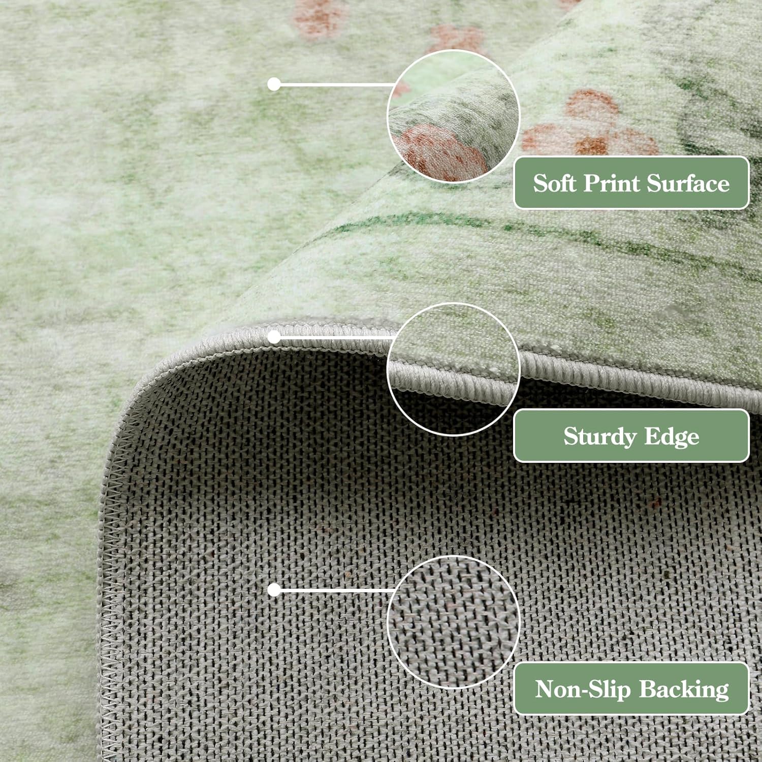 Wonnitar Floral Bow Print Washable Rugs 5x7, Sage Green Rug for Living Room, Ultra-Thin Non Slip Soft Boho Carpet for Dining Room Bedroom Kid Room Playroom, Light Green