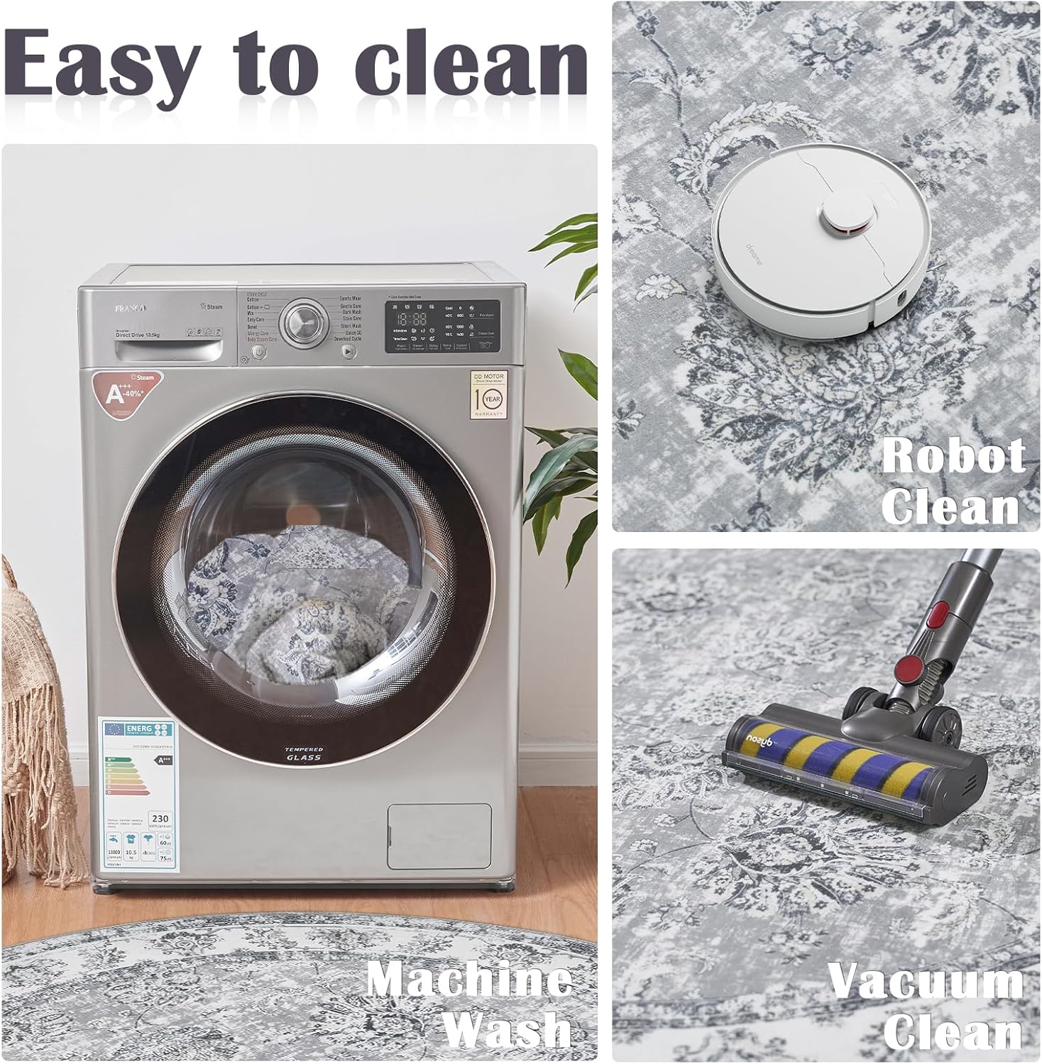 - Easy to Clean:With its stain resistant and easy to clean surface, Jinchan rug requires only minimal effort to keep it looking its best.Please try to Machine wash or vacuum regularly.Use a handheld small vacuum cleaner to remove the dust or hair for daily care. Machine wash with cold water on gentle cycle