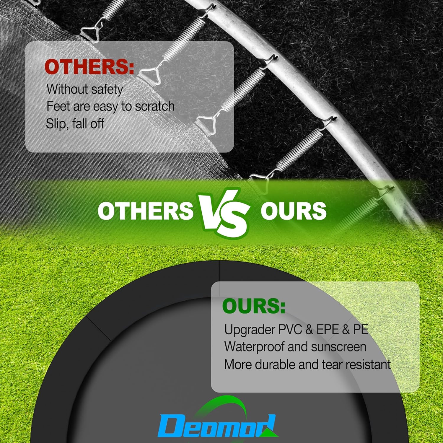 - [Safety Protection] Deomod 12 foot Trampoline Mattress covers the exposed trampoline spring to provide effective cushioning for the user. The soft and thick EPE closed-cell foam protects your children and family from injury. As a result, the user's safety and bouncing experience can be effectively guaranteed. trampoline cover 12 ft is a great trampoline parts option for users who need to replace their 12ft trampoline covers