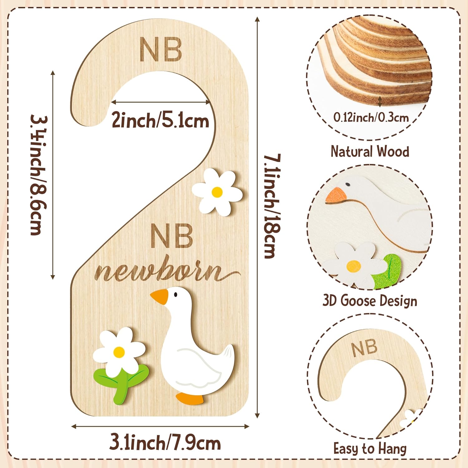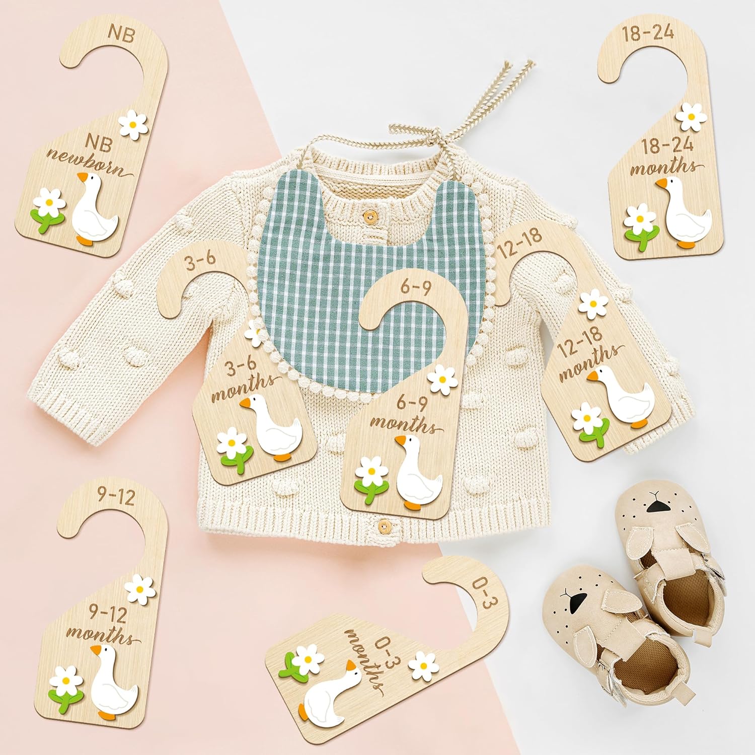- Unique Design: Featuring a hanging 3D cartoon goose, our dividers are not just practical but also add a touch of elegance to your baby's closet. The age-distinguishing design will not be as difficult to identify as the baby storage bag, so you can easily find your baby's clothes.