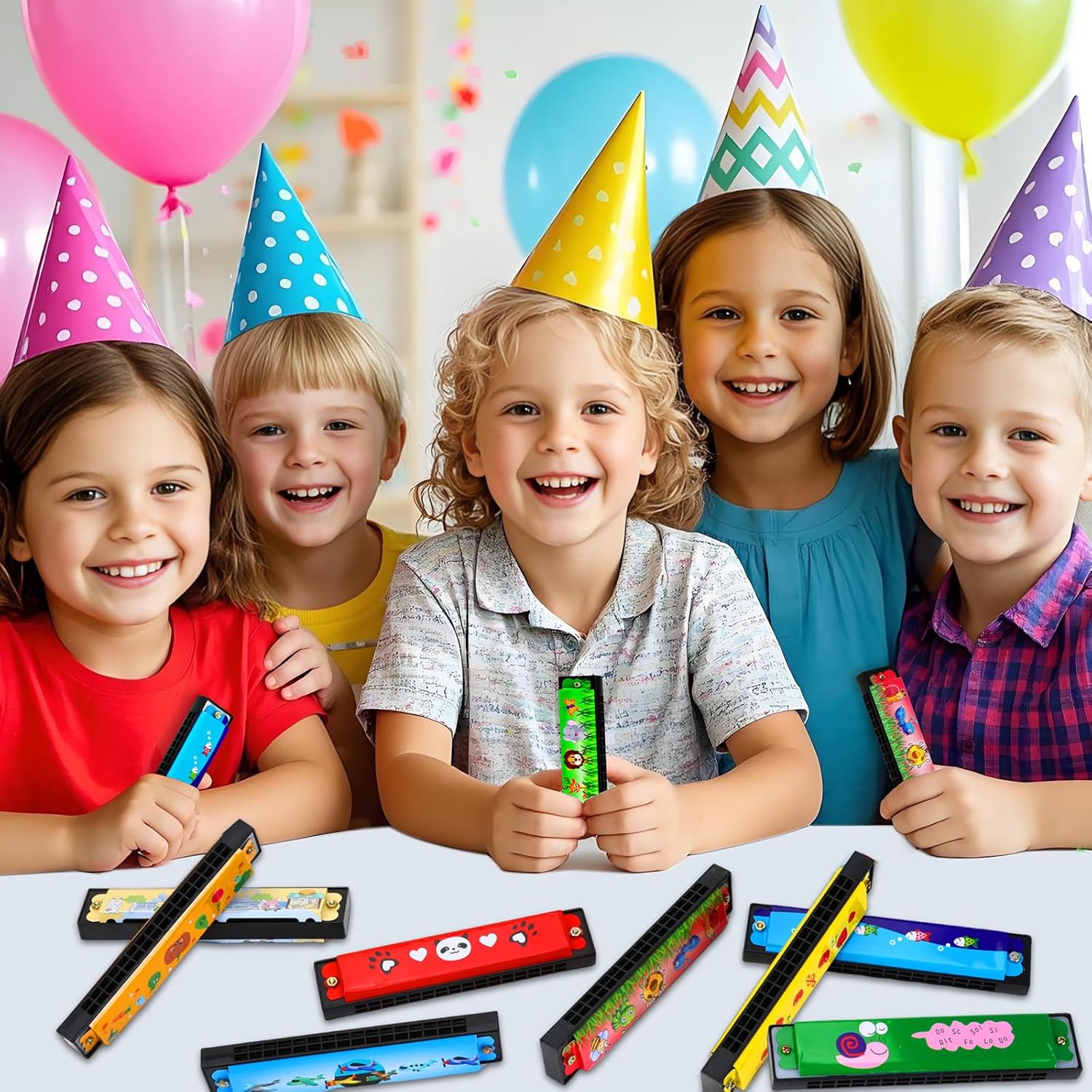 - Harmonica: This harmonica has 12 cartoon designs, with vivid colors,which can delight. Whether as a party gift or everyday toy, harmonica for beginners provides endless fun and is suitable for adults to enjoy the joy of music together