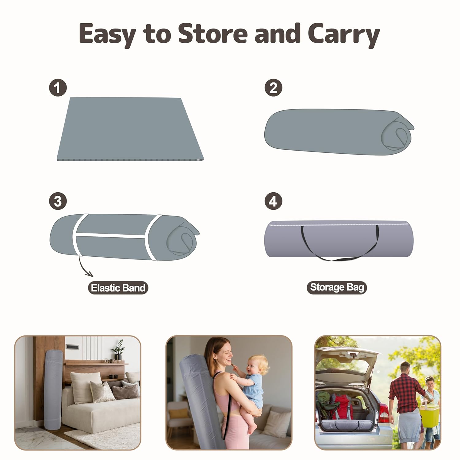 - With Storage Bag - The baby floor play mat includes an exclusive elastic strap and a compact storage bag for easy folding, travel and storage. Fits in a stroller, car trunk or closet - ideal for families on the go