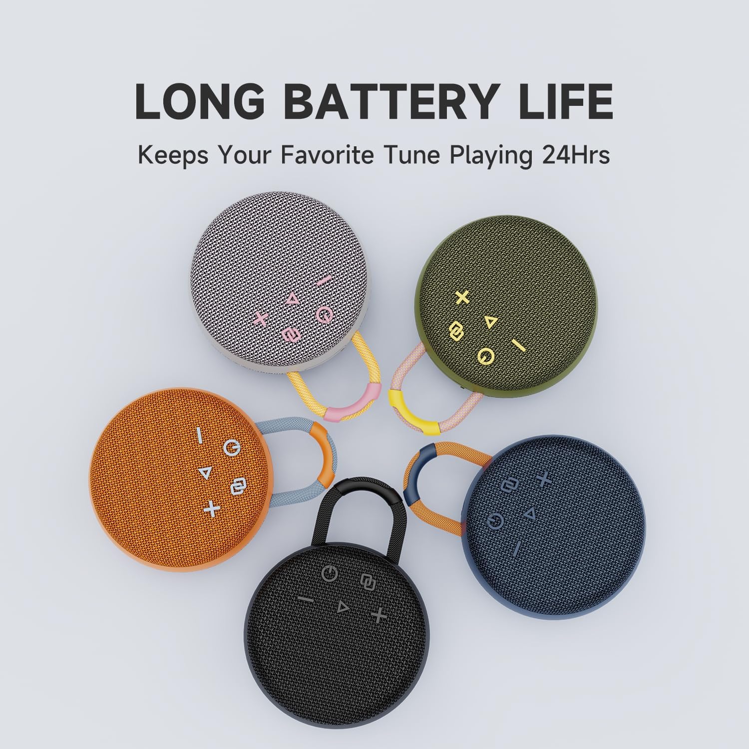 - Bluetooth Speaker with Decent Stereo Sound - With a high power internal magnetic speaker and non-distortion Bluetooth 5.2, this bluetooth speaker provide a sound that gives you immersive feelings. The M77 speakers bluetooth wireless have rich bass, clear mids, crystal high, and dynamic sound. Plus, this small bluetooth speaker also comes with a clip that you can clip the speaker on and enjoy music whenever and wherever you want. The portbale speaker can be as a gift for women, men, your friends or kids.