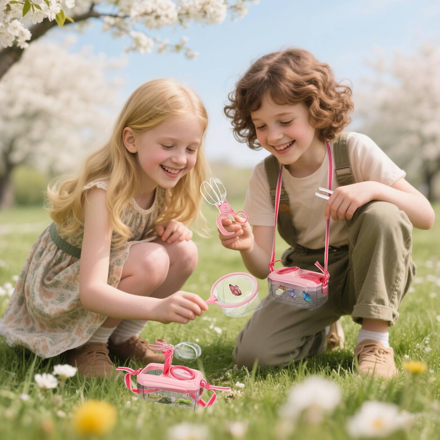 - Bug Collection Set: You will receive 2 sets of catcher kits of bug, each set contains an insect box with an adjustable strap, a scissor-style capsule insect clip, a butterfly net, and a tweezer. The set makes it easy for kids to catch insects and have a forgettable outdoor exploration experience.