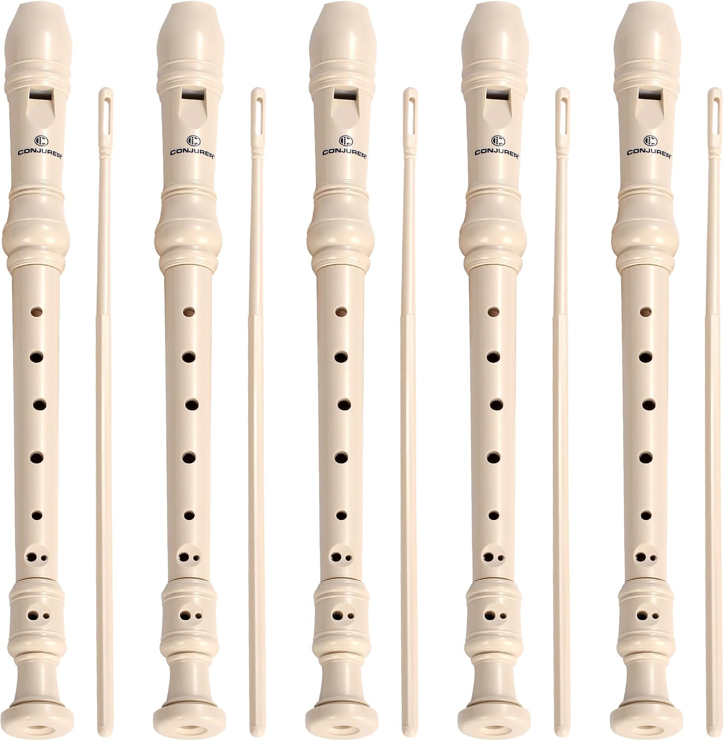 CONJURER 5Pc Soprano Recorder Instrument for Kids Student - German Fingering 8 Hole Flute ABS Descant Recorders for Beginners with Cleaning Rod and Bag for Kids over 3 Years Old