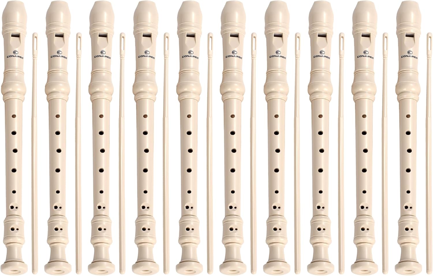 - CONJURER soprano recorder with 8-holes, German Fingering System. Package includes 10 soprano recorder, 10 portable storage bag, 10 cleaning rod, and 10 fingering Chart. Recorders for kids over 3 years old.