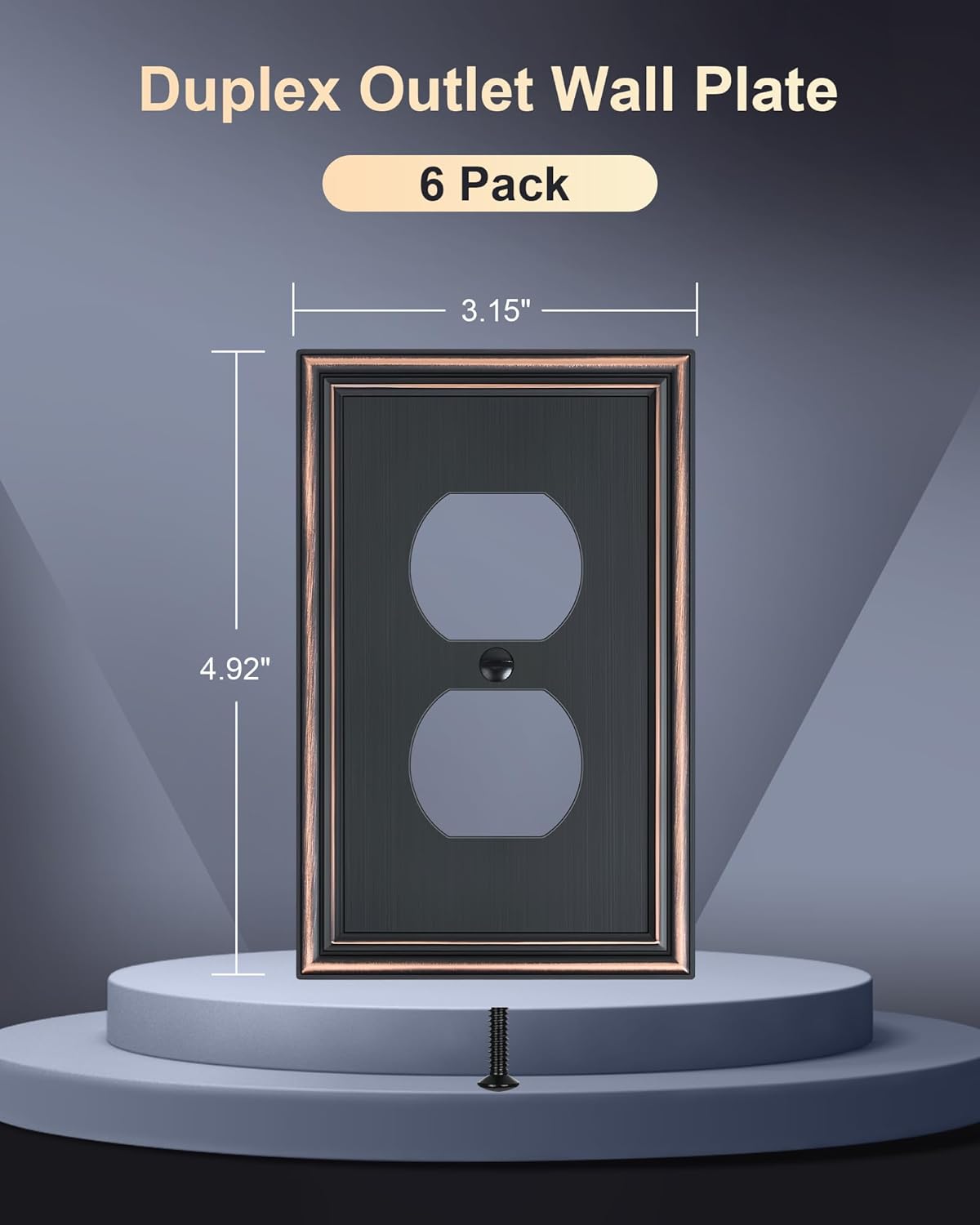 6-Pack Single Duplex Outlet Cover Plate, Decorative Aged Bronze Switch Plates and Outlet Covers, Metal Wall Plates for Electrical Outlets, 1 Gang Receptacle Cover, Corrosion Resistant