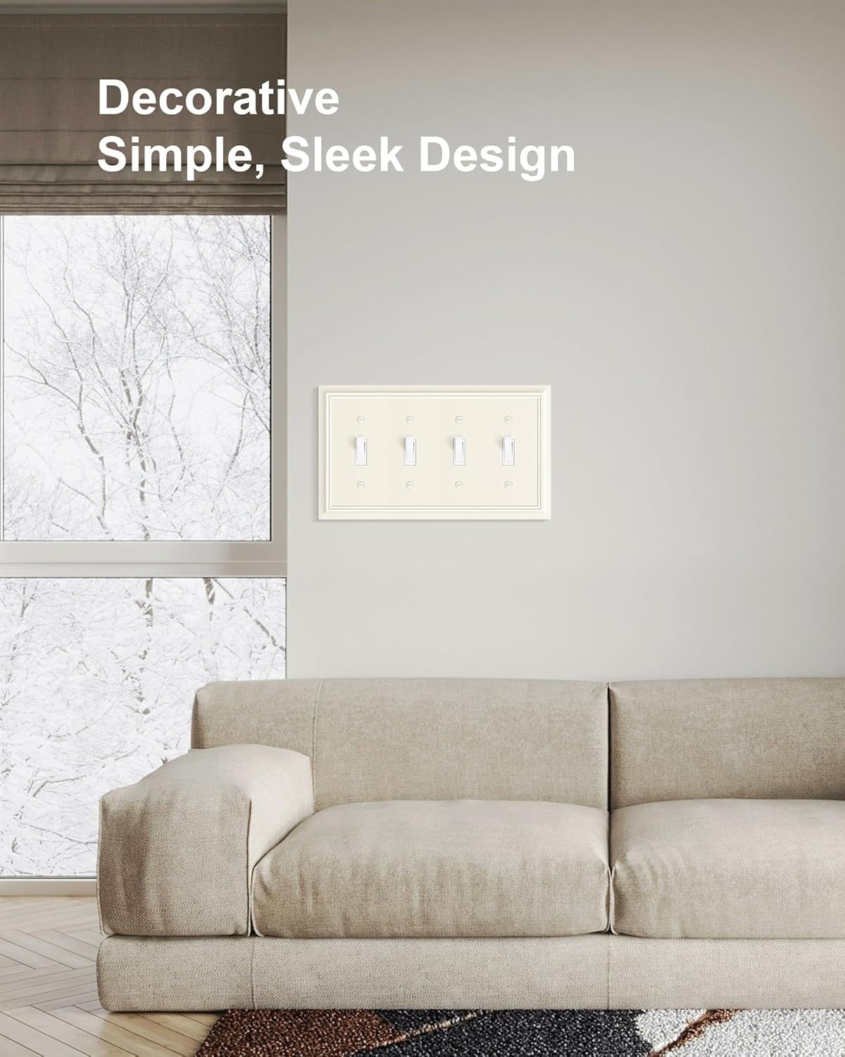 - Timeless Elegance - The 4 light switch cover plate boasts simple, clean lines and modern, minimalist design. The light almond finish effortlessly blends with various decor styles, from modern to transitional, adding a touch of understated sophistication.
