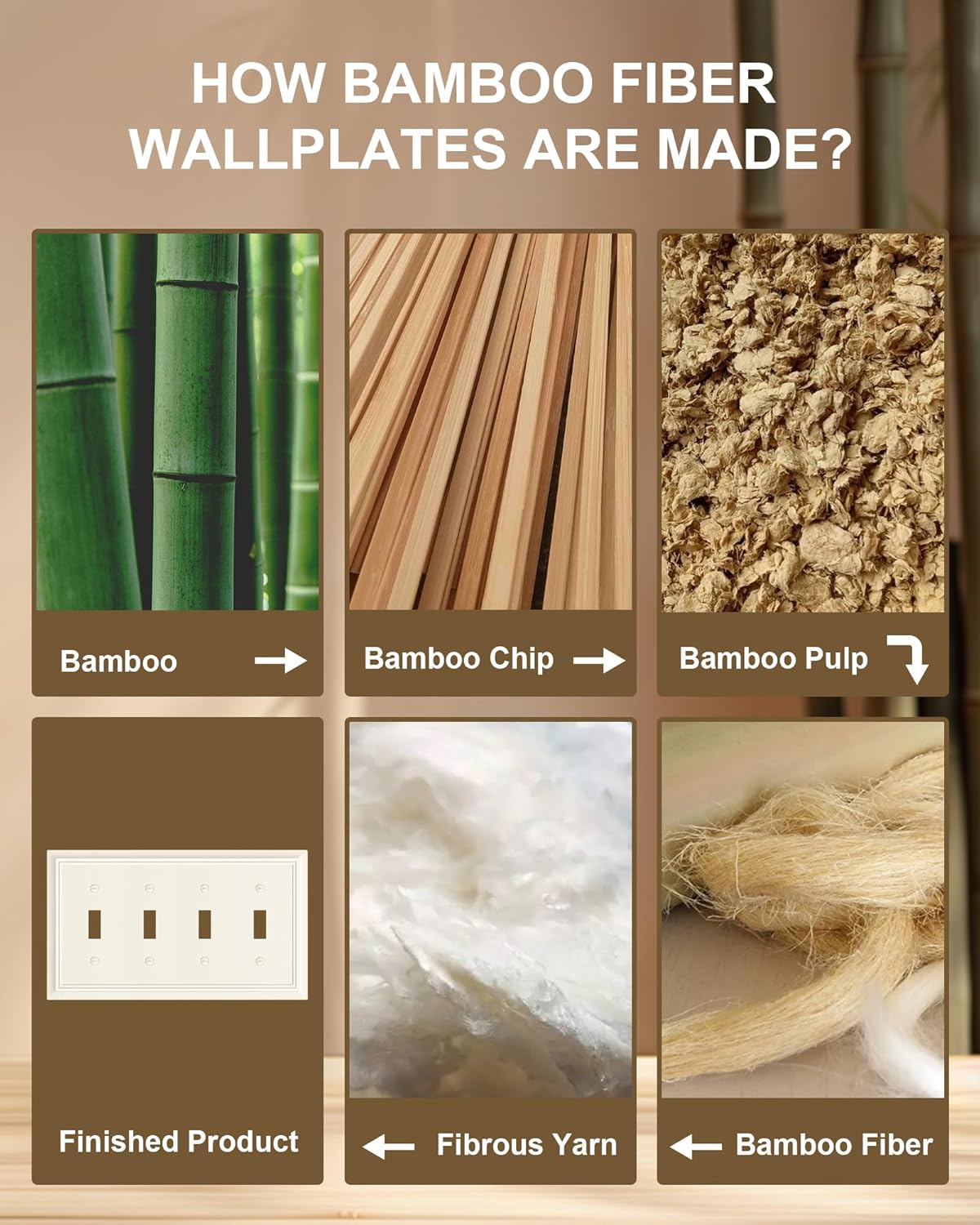 - Natural Bamboo Fiber Material - The wall plate covers are made from sustainable and environmentally friendly bamboo fiber, much thicker and more robust than plastic covers, easier to clean. Resistant to heat, moisture, and corrosion, ensuring it remain a stunning addition to your home for years to come.