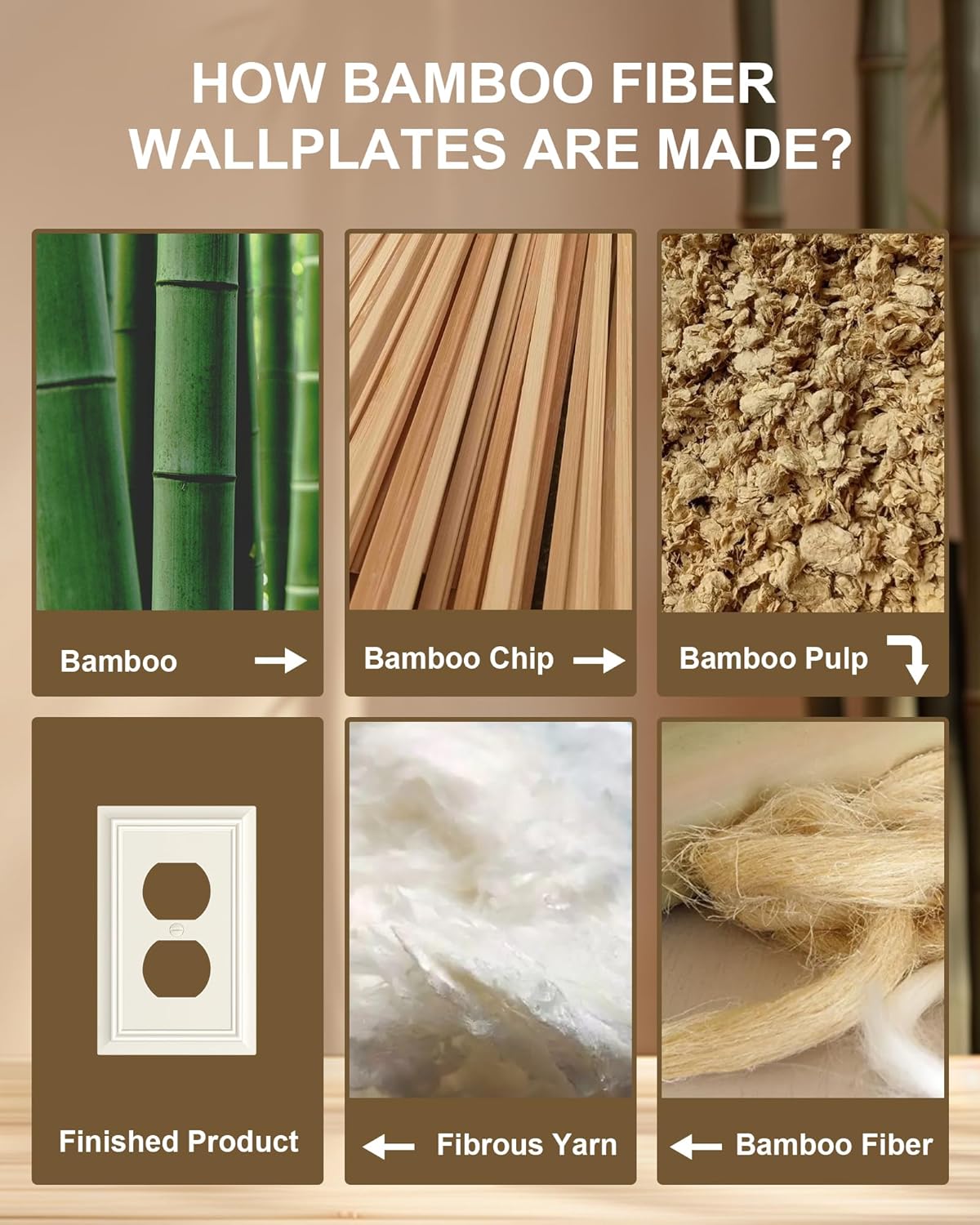 - Natural Bamboo Fiber Material - The wall outlet covers are made from sustainable and environmentally friendly bamboo fiber, much thicker and more robust than plastic covers, easier to clean. Resistant to heat, moisture, and corrosion, ensuring it remain a stunning addition to your home for years to come.