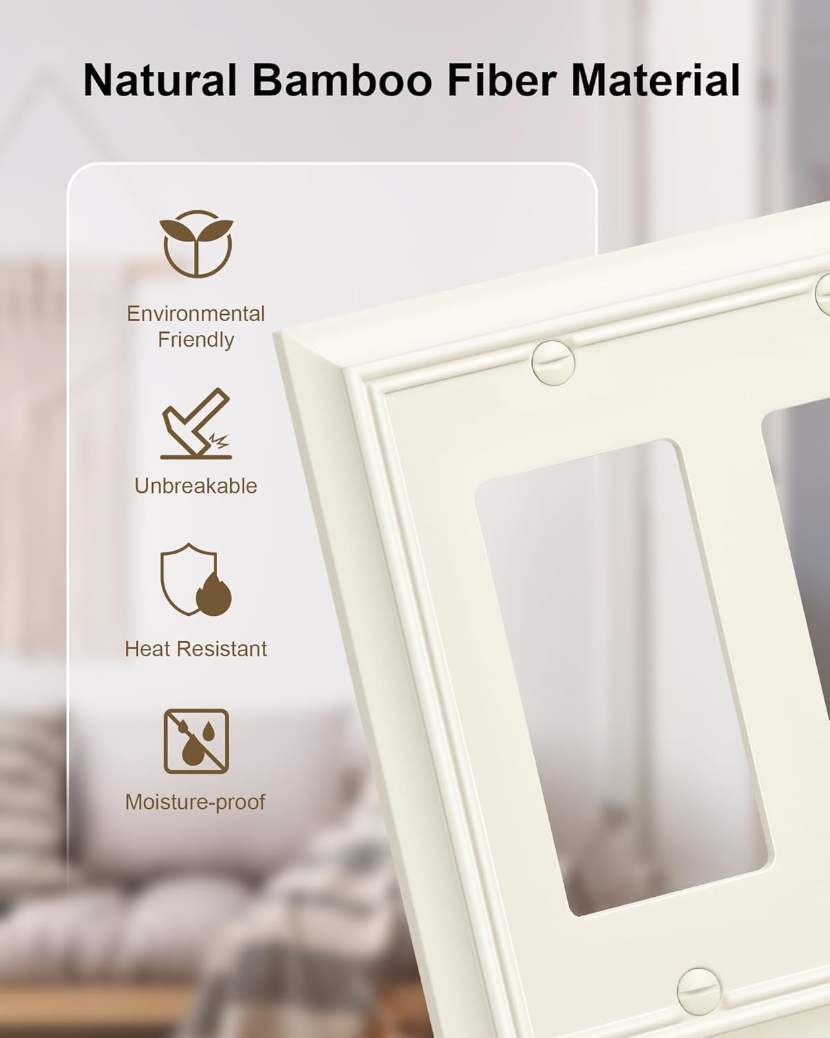 - Natural Bamboo Fiber Material - The wall plate covers are made from sustainable and environmentally friendly bamboo fiber, much thicker and more robust than plastic covers, easier to clean. Resistant to heat, moisture, and corrosion, ensuring it remain a stunning addition to your home for years to come.