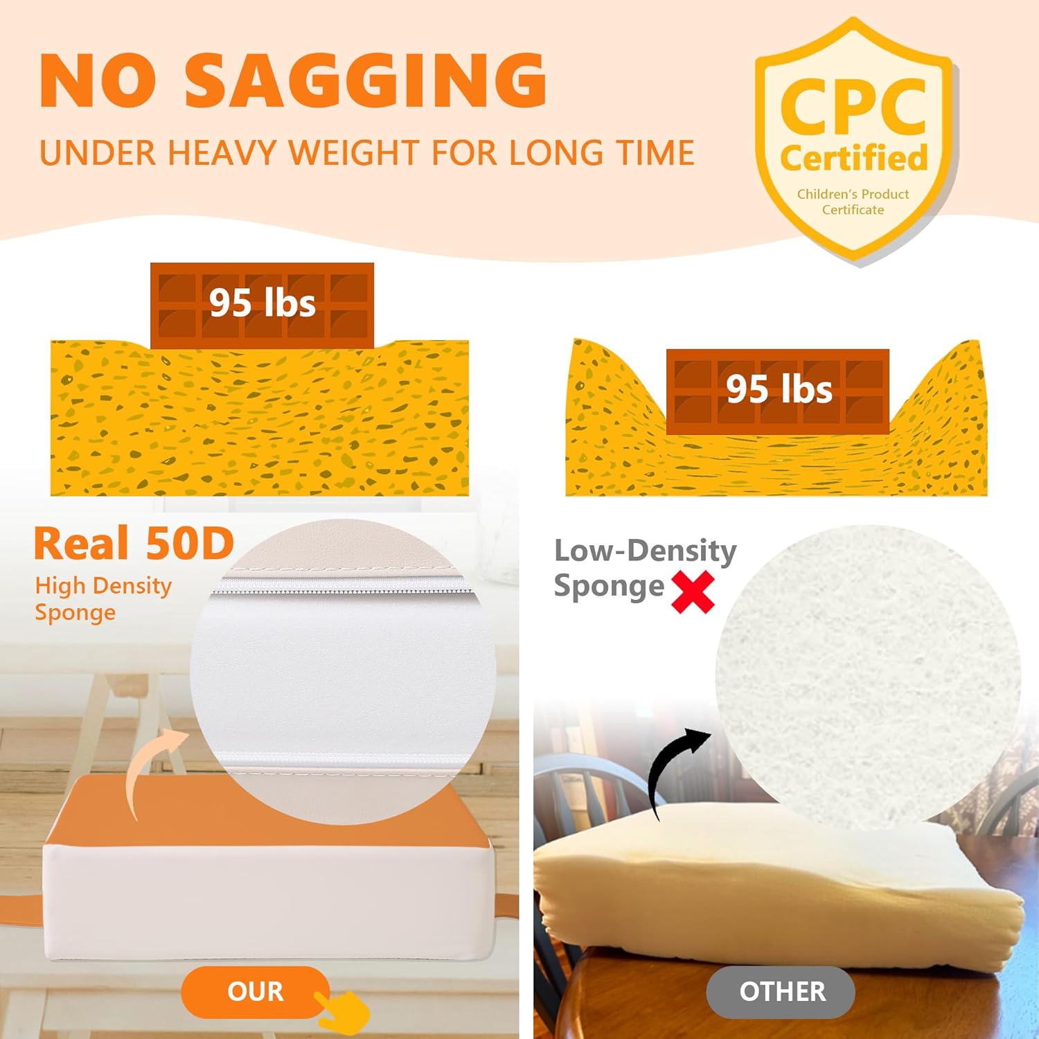 - 【REAL 50D Sponge, ZERO Sagging】The Booster Seat from Sylynvia Brand is of REAL 50D high-density sponge, which ensures softness and comfort while being able to withstand a weight of 80 pounds and will not sag when sitting for a long time, providing excellent support.This means that it has a long service life and your baby can use it from the age of 1 to 8 years old.