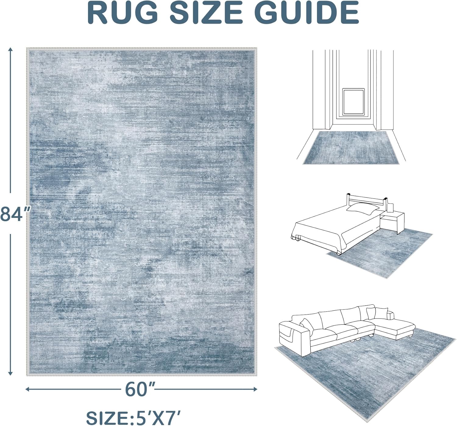 Area Rugs 5x7 Living Room: Washable Rug Modern Abstract Large Rugs Soft Non Slip Neutral Rug Stain Resistant Indoor Carpet for Bedroom Kitchen Dining Room Table Nursery Home Office Rugs(Blue,5'x7')