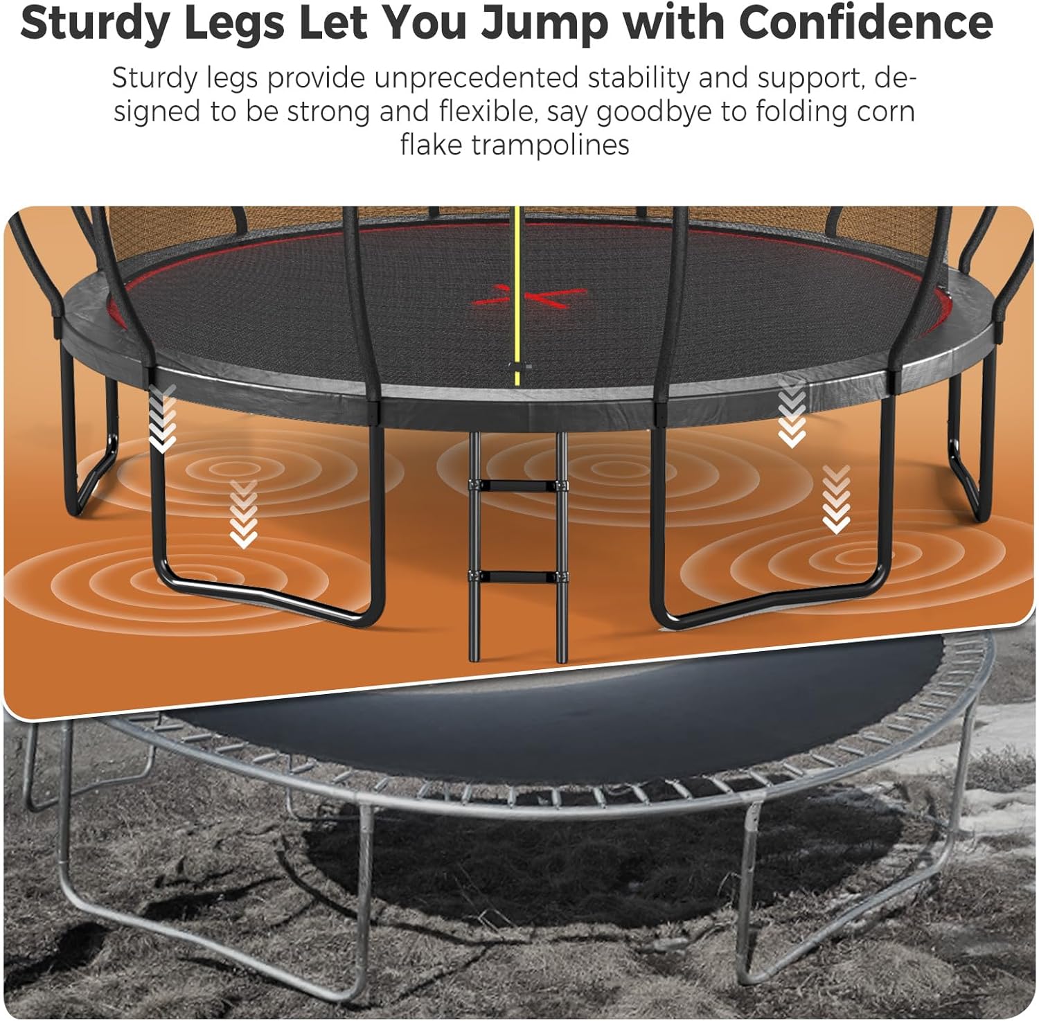 - 【Safety Comes First】Our 16FT pumpkin trampoline prioritizes safety with its curved pole design and inner net. You'll find 12 curved poles, each wrapped in soft foam and covered with waterproof plastic. Not only does this enhance the trampoline's durability, but it also safeguards your children from collisions with steel poles