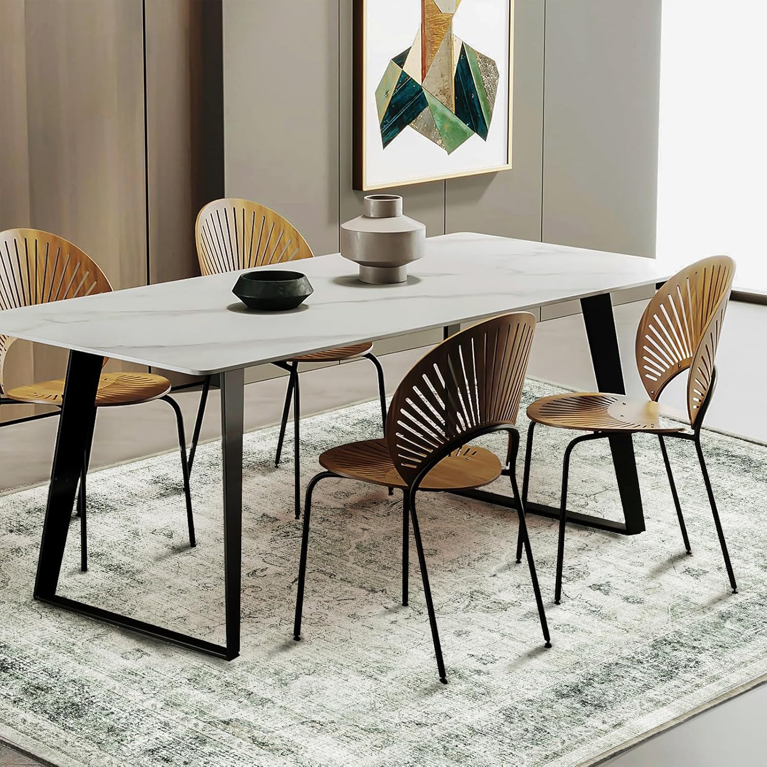 - Ultra-thin Safe: This ultra-thin Moroccan rug can be easily placed in entryways and under furniture, and won't get stuck on doors and become a tripping hazard. The sweeping robot can move freely to clean the carpet.This indoor rug can be used in many occasions, such as entry, living room, bedroom, dining room and more