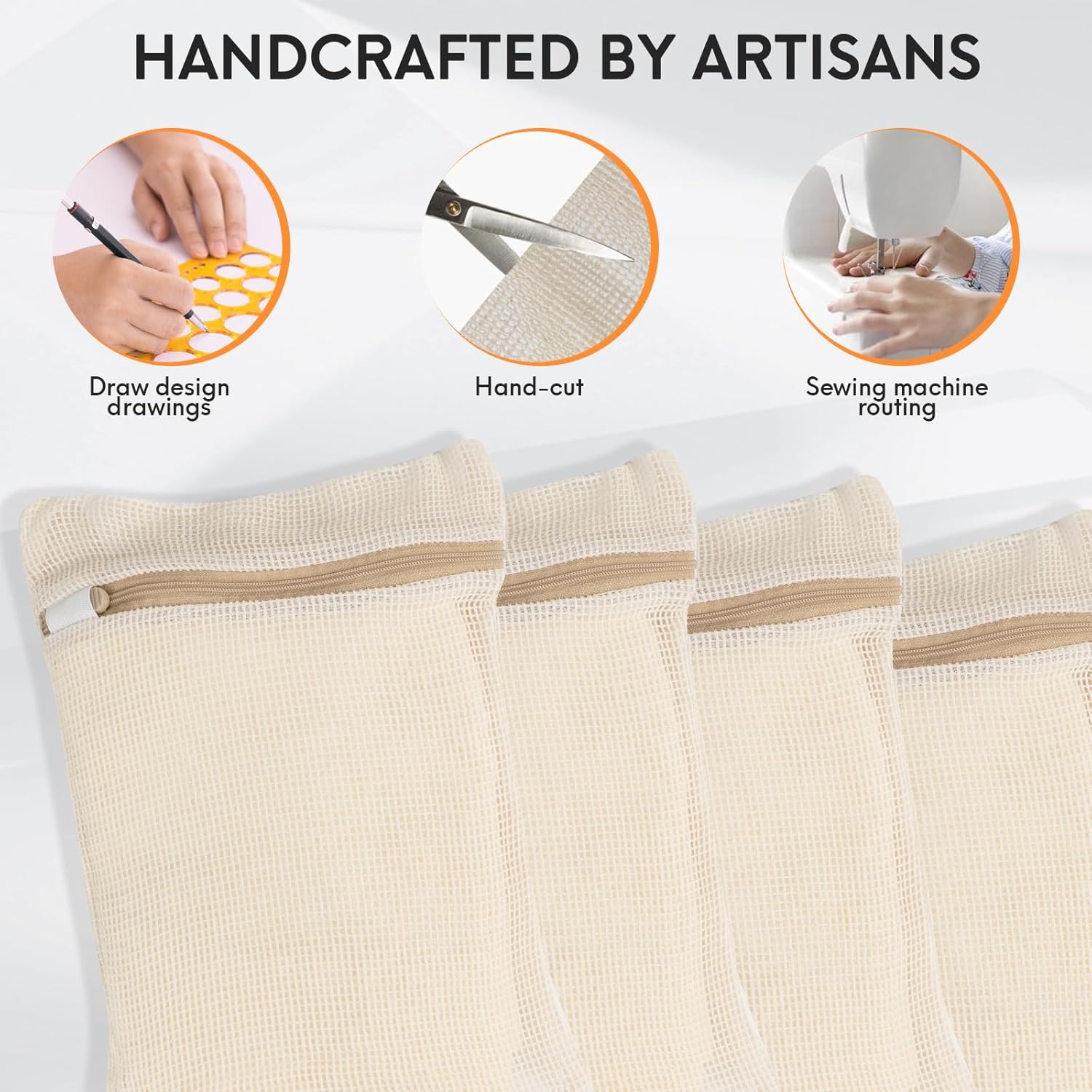 4 Piece Small, Durable Organic Cotton Mesh Laundry Bag with Strong Zipper and Breathable Mesh, Delicate Laundry Bag for Underwear, Clothes, Pants and Socks