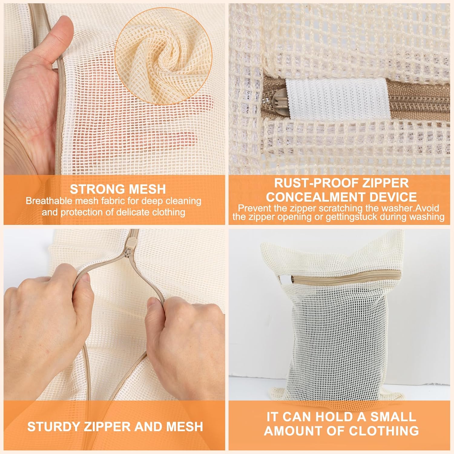 - 【Breathable Mesh, Special Zipper】Breathable mesh allows water to flow in and out smoothly, making it easy for the washer to deep clean clothes without wrinkling. The rust-resistant and durable zipper comes with a rubber band cover. You will say goodbye to zipper scratches on the washer and the opening of the laundry bag during the washing process.
