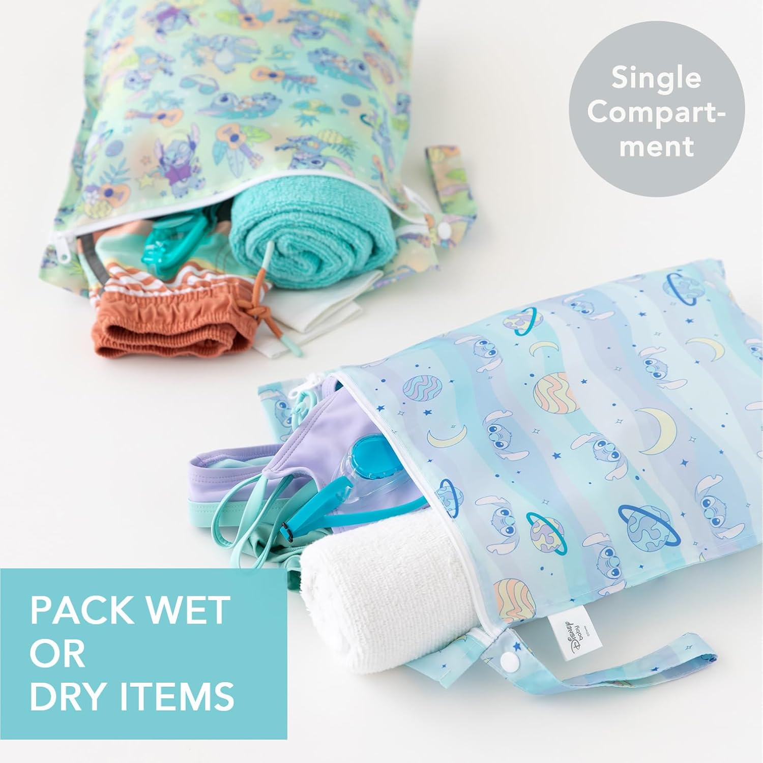 Bumkins - Waterproof Wet Bag - For Baby, Travel, Swim Suit, Cloth Diapers, Pump Parts, Pool, Gym, Toiletry, Strap to Stroller - Reusable & Easy to Clean - 2pk - Disney Stitch