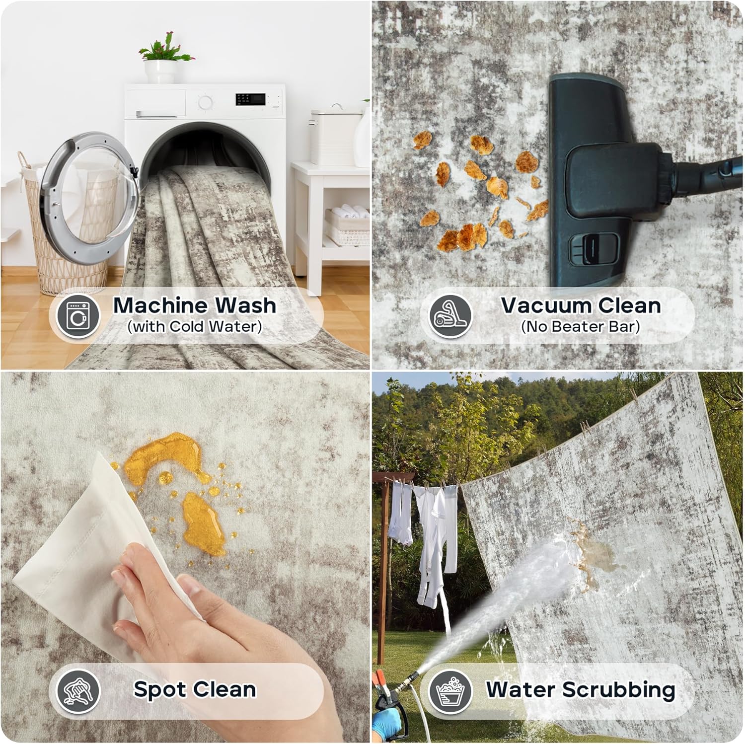 - Easy Maintenance: Keep your space fresh and clean with minimal effort. Our modern 5x7 area rugs are machine washable, spot-cleanable, and vacuum-friendly, making maintenance a breeze. Use a low-power vacuum regularly to remove dust or pet hair for everyday care. Avoid using bleach for best results