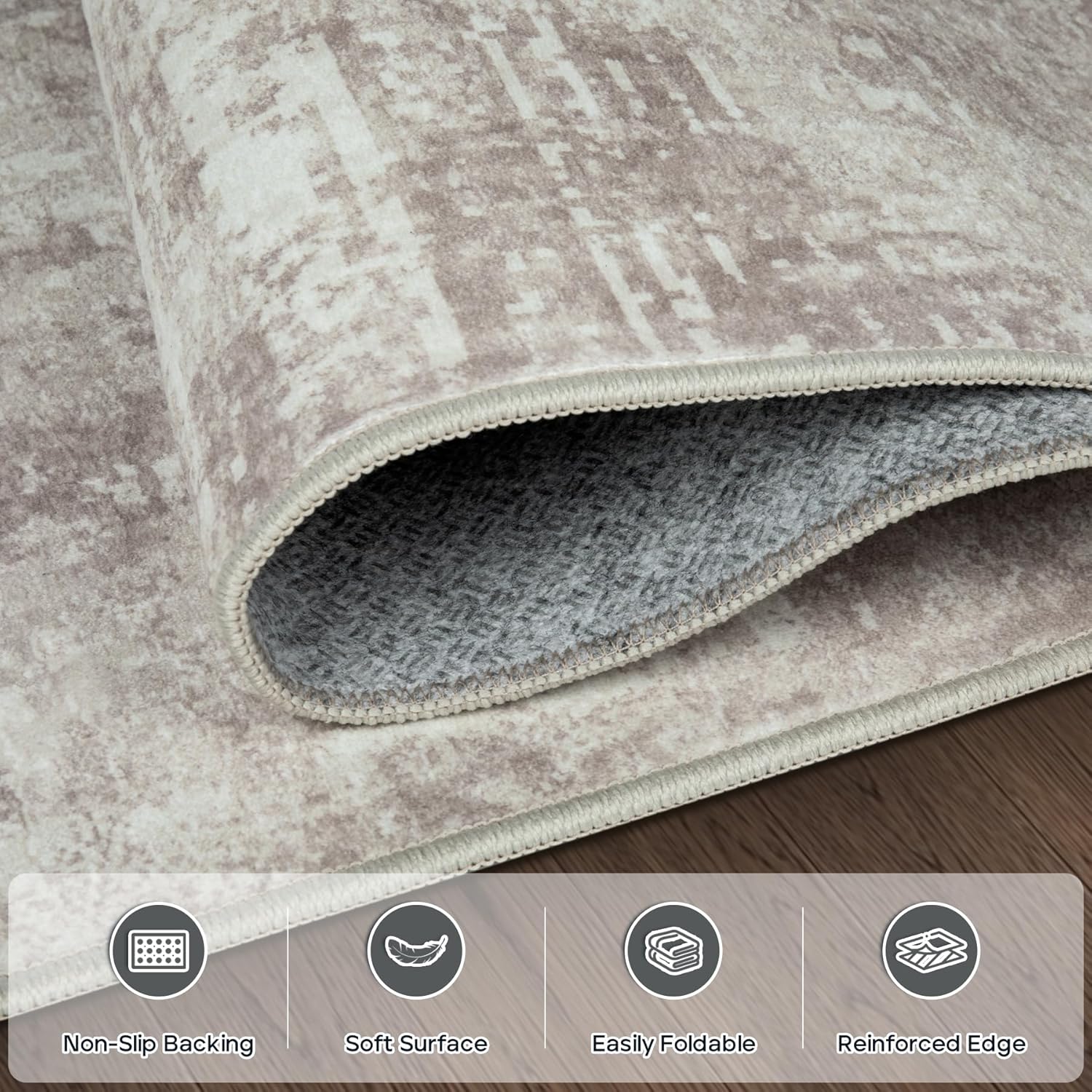 6x9 Area Rugs for Living Room Rug Washable: Modern Rug for Dining Room Bedroom Carpet Non Slip Low Pile 6 by 9 Indoor Abstract Nursery Home Office Brown Grey