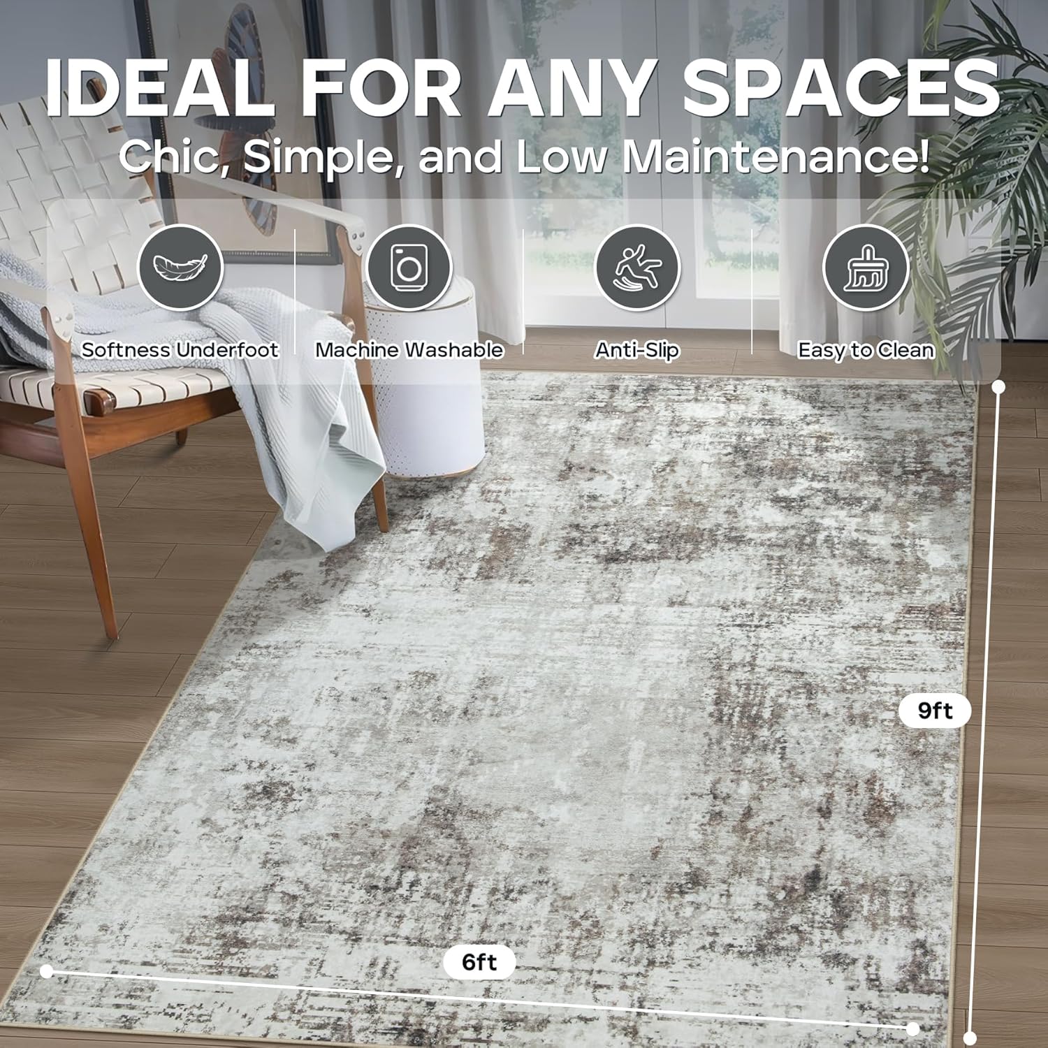 - Non-Slip & Non-Shedding Design: Enjoy peace of mind with our washable area rug, featuring an upgraded TPE rubber backing. Say goodbye to slipping or sliding—the 6x9 rug stays securely in place, making it perfect for homes with young children or elderly family members. Its strong grip ensures safety while offering both comfort and style