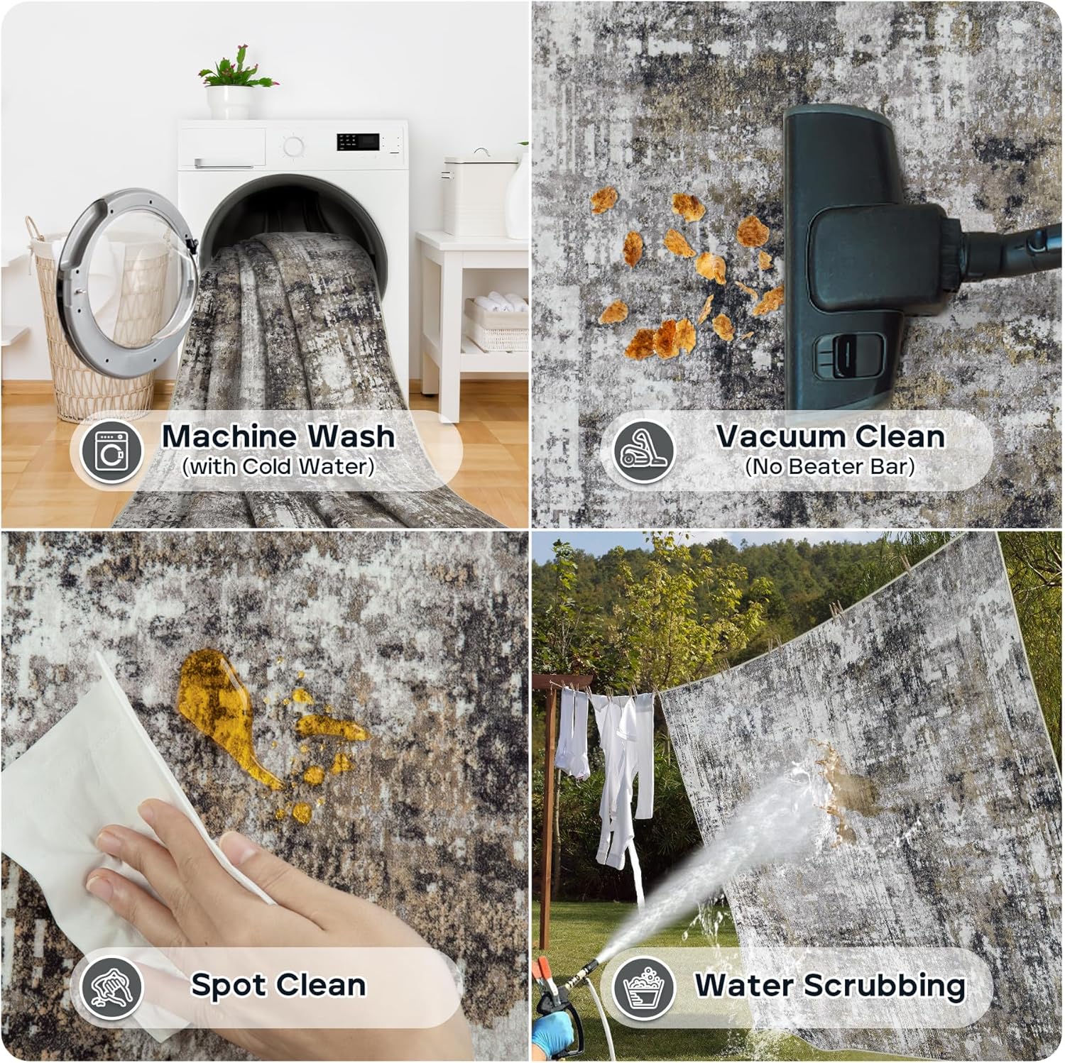 - Easy Maintenance: Keep your space fresh and clean with minimal effort. Our modern 8x10 area rugs are machine washable, spot-cleanable, and vacuum-friendly, making maintenance a breeze. Use a low-power vacuum regularly to remove dust or pet hair for everyday care. Avoid using bleach for best results