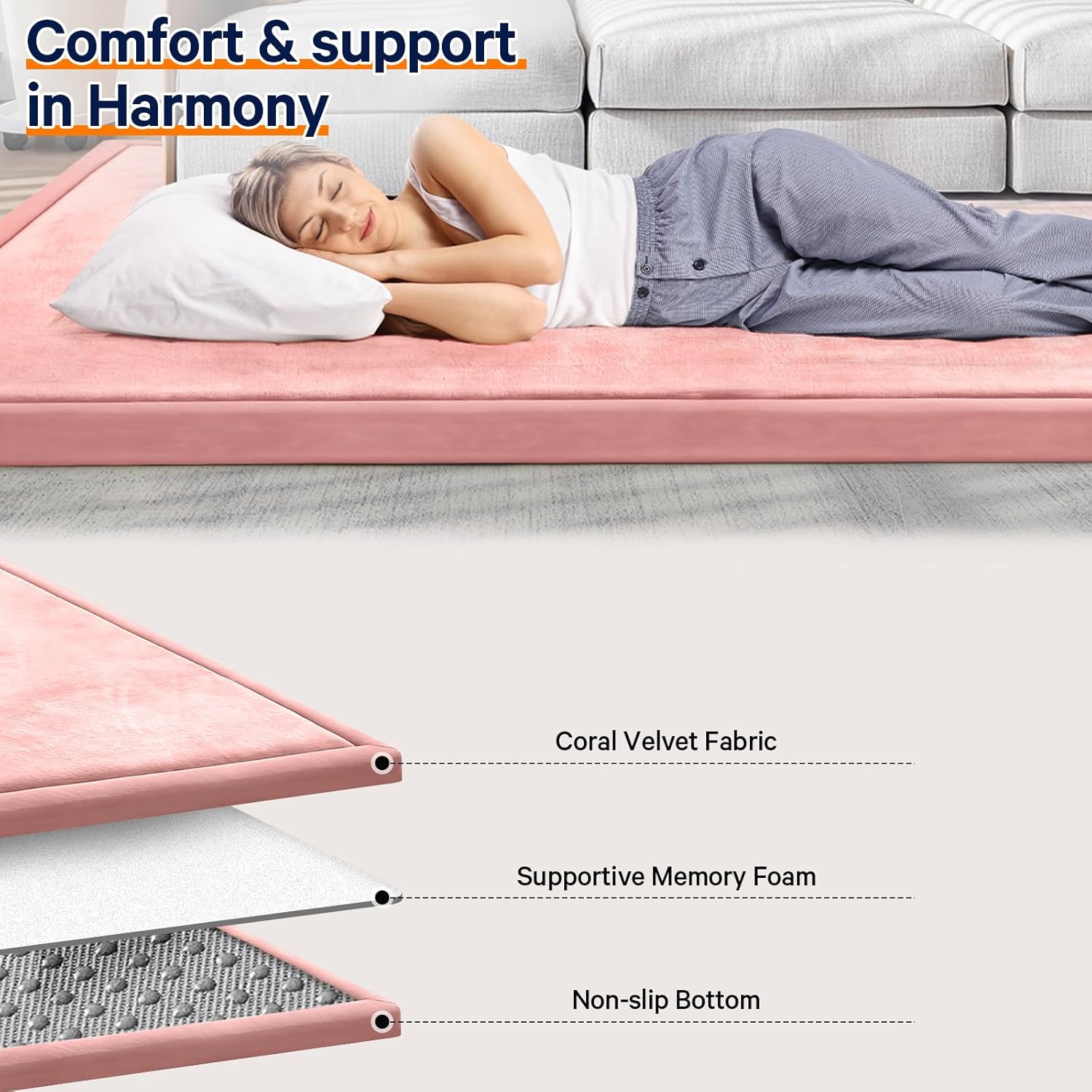 - 🐣SAFE & COMFY: Our baby play mat is made of 100% coral velvet material and filled with high-quality 3.5cm thick memory foam,eco-friendly and durable, providing a safe and comfortable play area for your babies, without worrying about them hurting themselves on hard floors.The surface of this tummy time mat is velvet cover, which is not only soft and comfortable to touch, but also has a good cushioning effect.