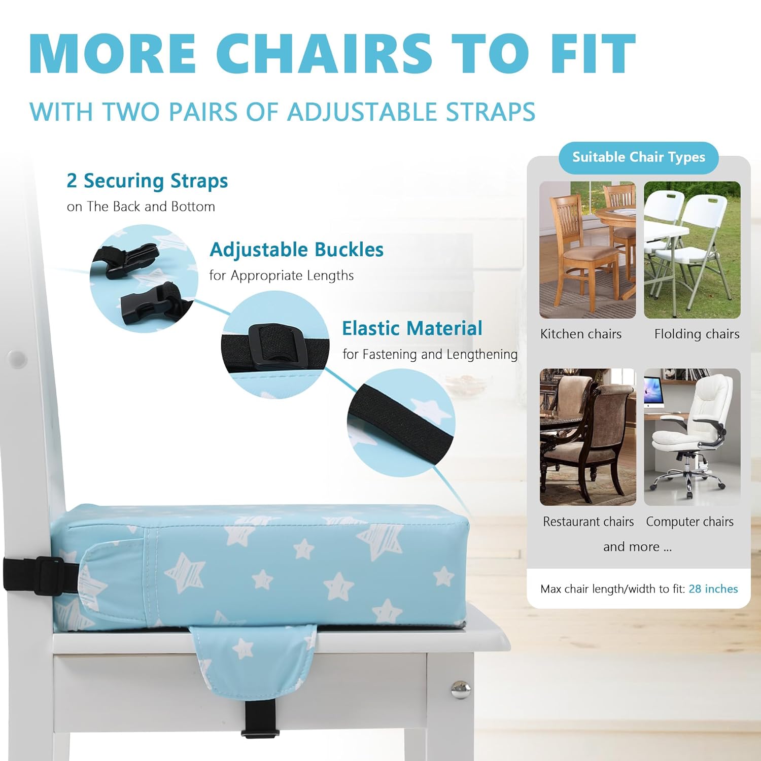 - 【Easy to Clean】The cover of this booster seat is made of waterproof fabric, which can prevent stains from penetrating to a certain extent. You can quickly wipe it with a damp cloth, or remove it for washing. This makes keeping the seat clean effortless and saves you valuable time and energy.
