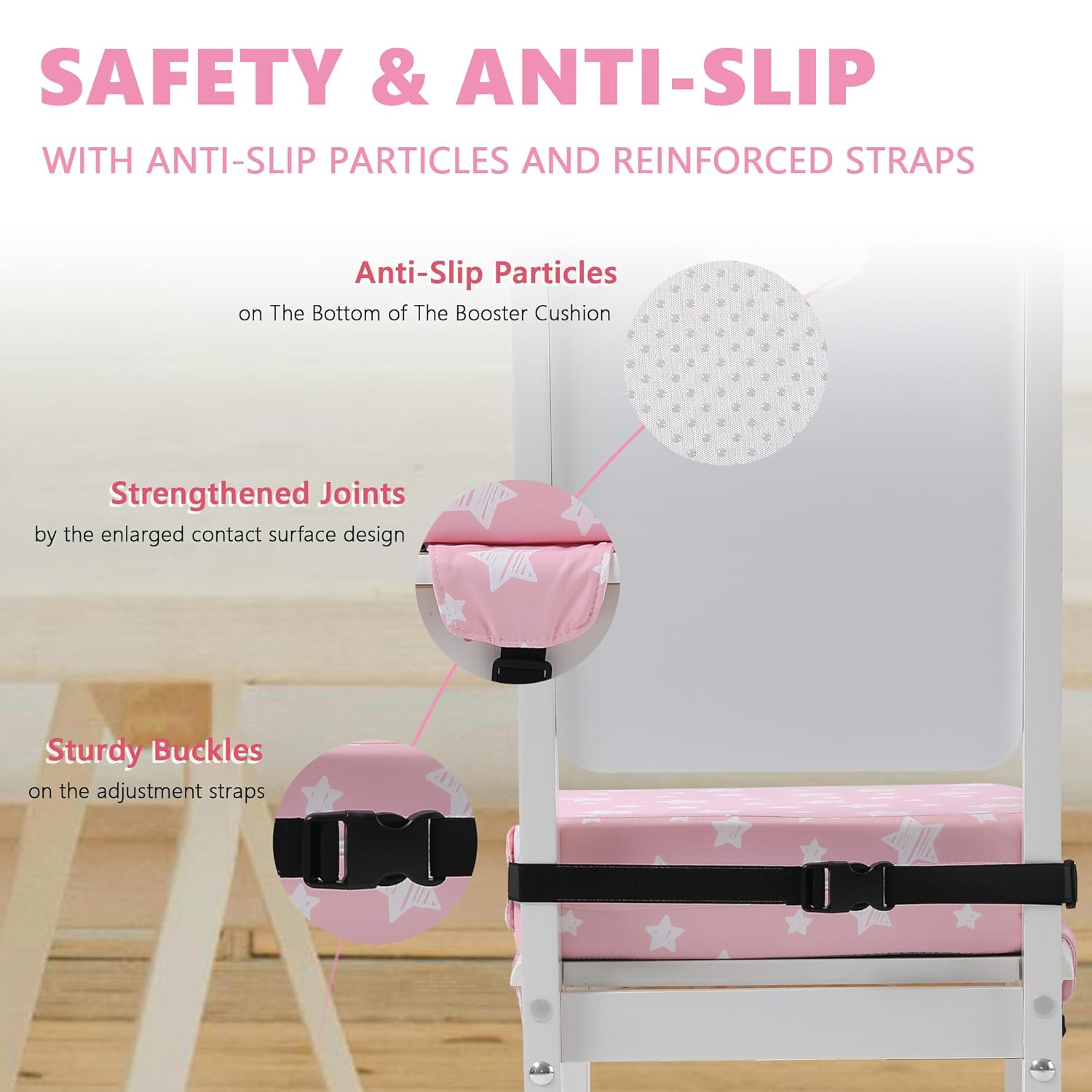 Booster Seat for Kitchen Chair with Adjustable Straps, Toddler Booster Seats for Dining Table Portable for Travel Camping Eating, Booster Cushion for Table for Baby Child Infant Kid Boy Girl