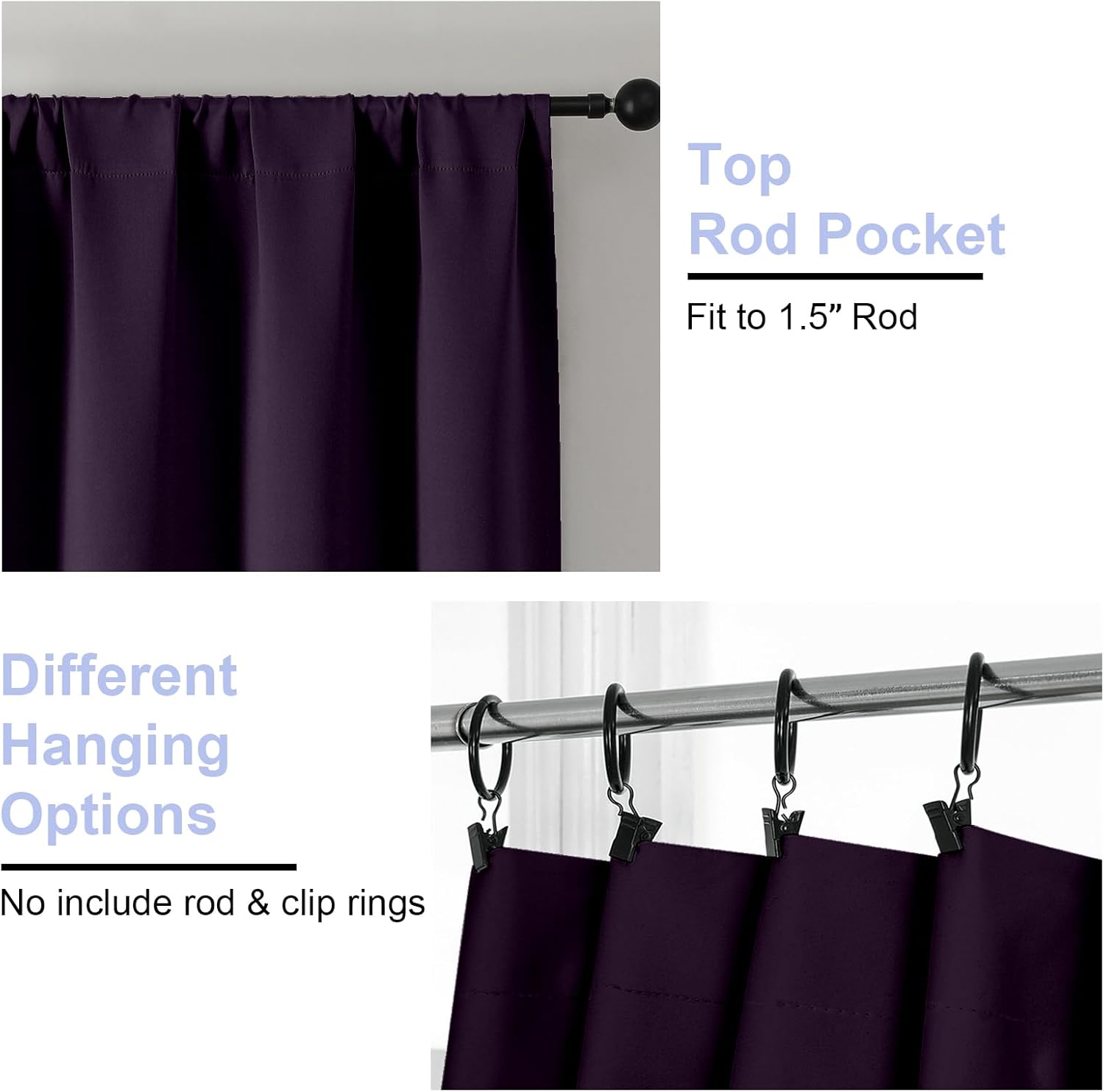 Simplebrand Ava BlackBerry Blackout Curtains for Bedroom 63 Inch Length 2 Panels Set, Nursery Thermal Insulated Energy Saving Rod Pocket Window Treatment Curtains Blackout Drapes, W40 x L63 Inch
