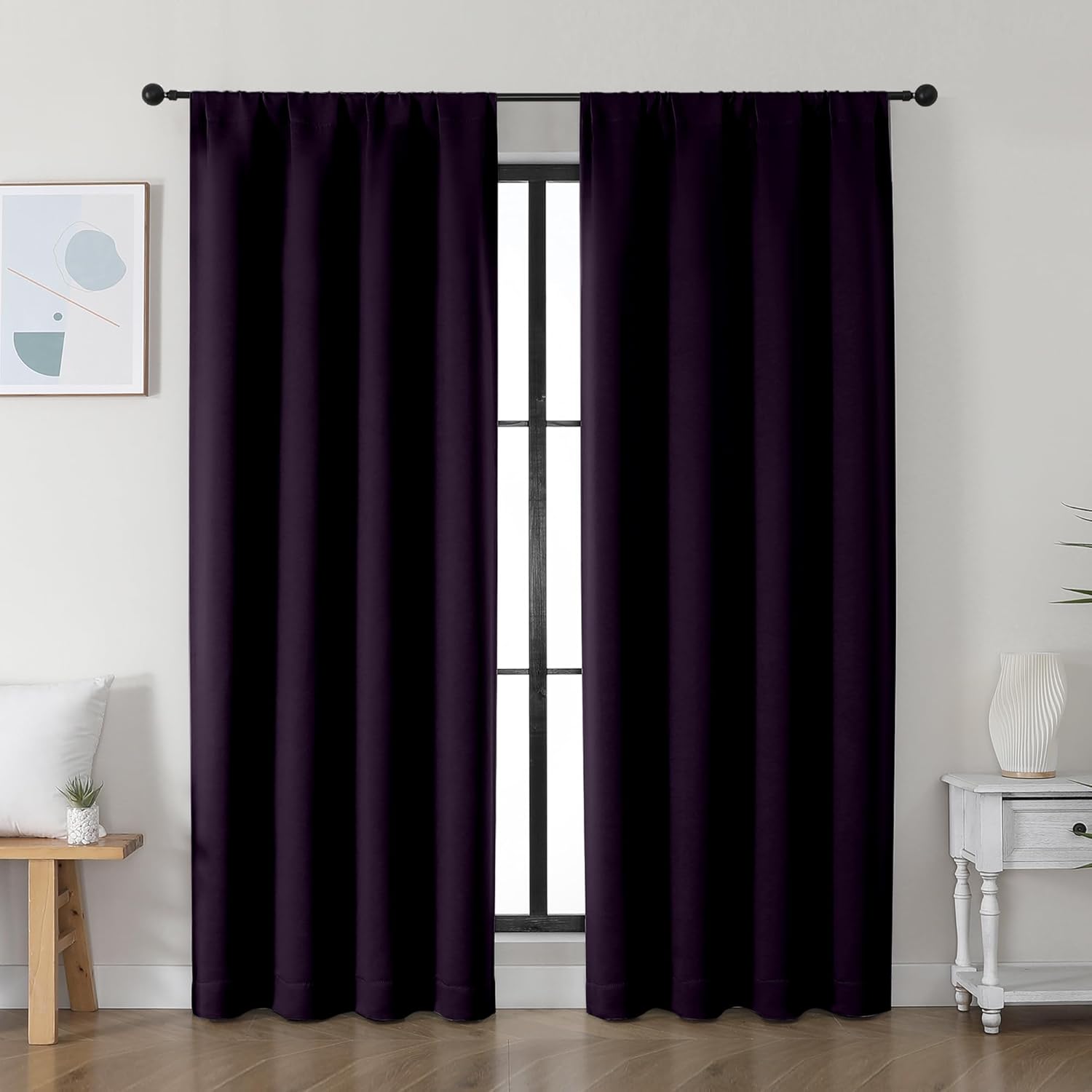 Simplebrand Ava BlackBerry Blackout Curtains for Bedroom 72 Inch Length 2 Panels Set, Privacy Thermal Insulated Rod Pocket Door Window Curtains for Patio French Door Front Door, W40 x L72 Inch