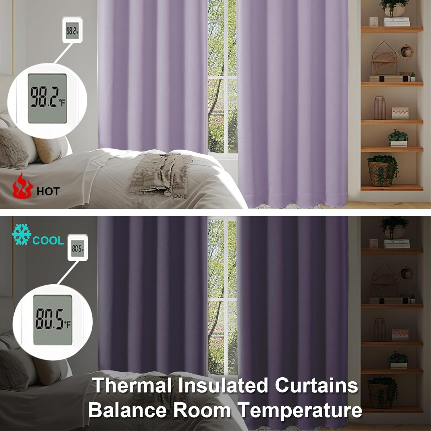 Simplebrand Ava Lilac Short Blackout Curtains for Bedroom 45 Inches Long 2 Panels Set, Solid Thermal Insulated, Energy Saving Window Treatment Curtains Blackout Drapes, W40 x L45 Inch, Lilac