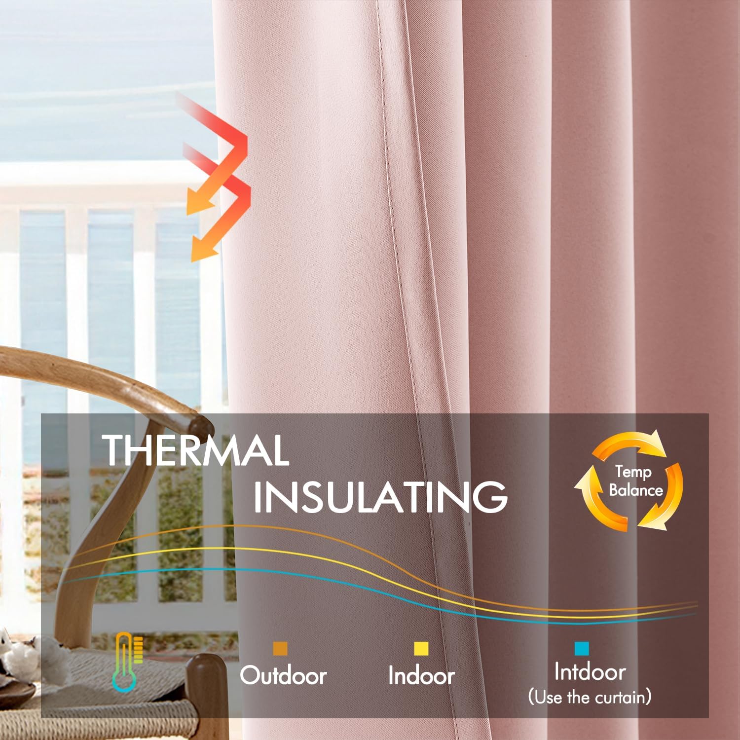 ANRODUO Light Pink Blackout Curtains for Girls Bedroom Living Room, Back Tab Rod Pocket Pinch Pleated Thermal Insulated Room Darkening Curtains 72 Inches Long 2 Panels, 42 x 72 Inch