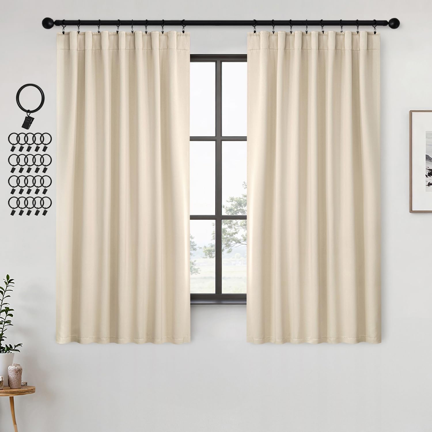- MULTIPLE HANGING OPTIONS:Each curtain panel has 3-in-1 top style design: Rod Pocket, Back Tab and Pinch Pleat.We will include 20 pin hooks and clips for each pair of curtains (rings included)
