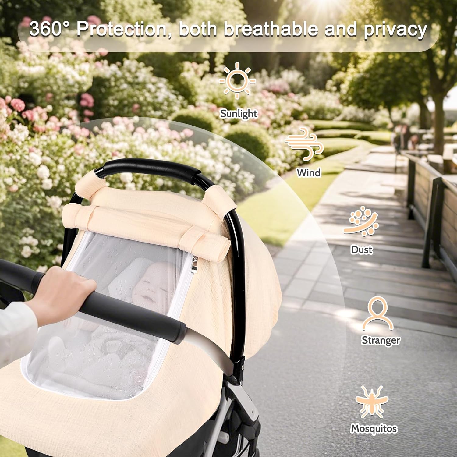 - 360°Full Coverage & Privacy Protection: Designed with 360°full coverage, this car seat canopy provides optimal shade and privacy, and protects your baby from mosquitoes, ideal for baby essentials while on the go