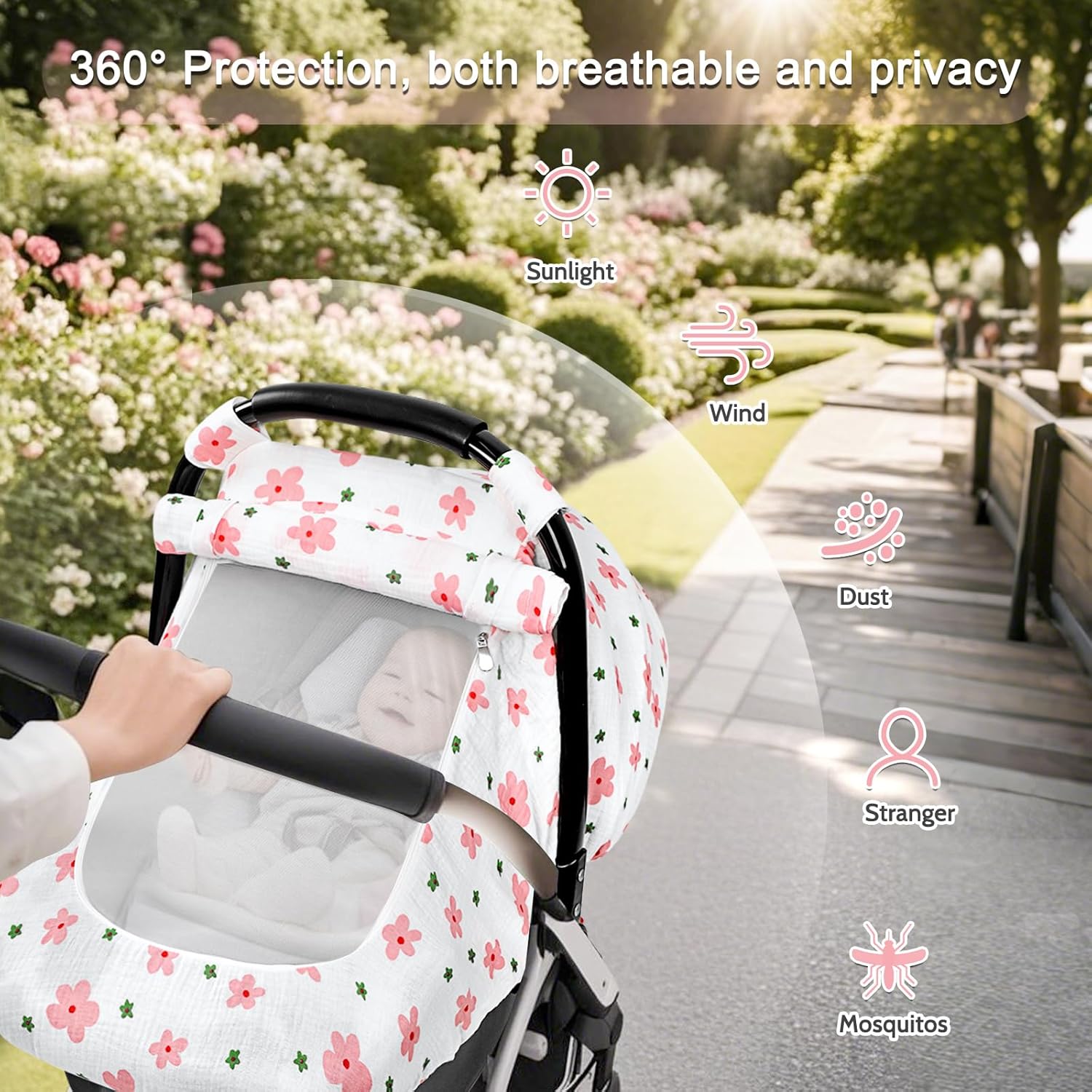 - Premium Muslin Fabric & Enhanced Breathability: Crafted from 100% soft, lightweight muslin cotton, our car seat cover ensures superior airflow to keep your baby cool and comfortable, perfect for summer essentials for baby