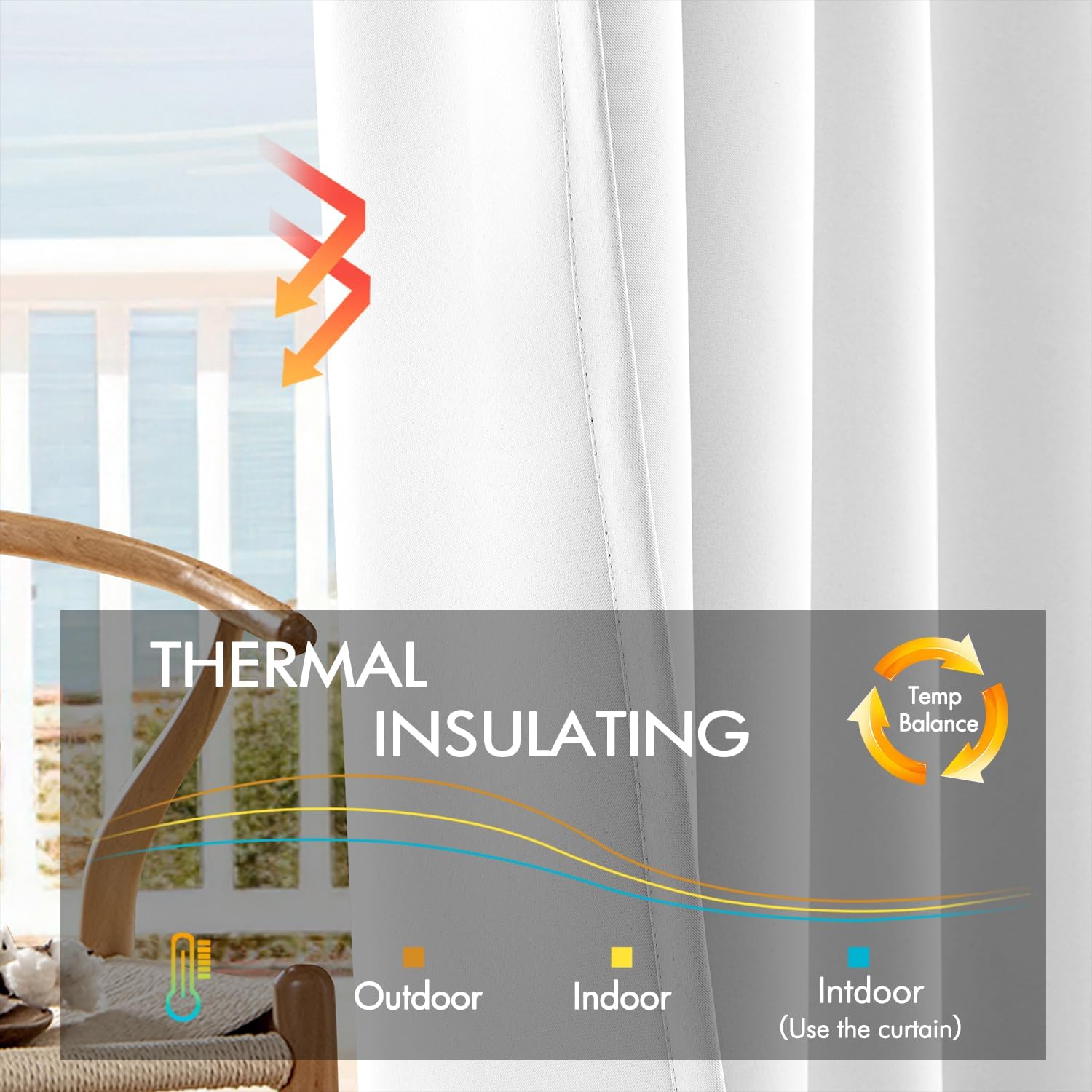 ANRODUO Back Tab Blackout Curtains for Bedroom Living Room, Rod Pocket Pinch Pleated Thermal Insulated Room Darkening Curtains 90 Inches Long 2 Panels, White, 42 x 90 Inch