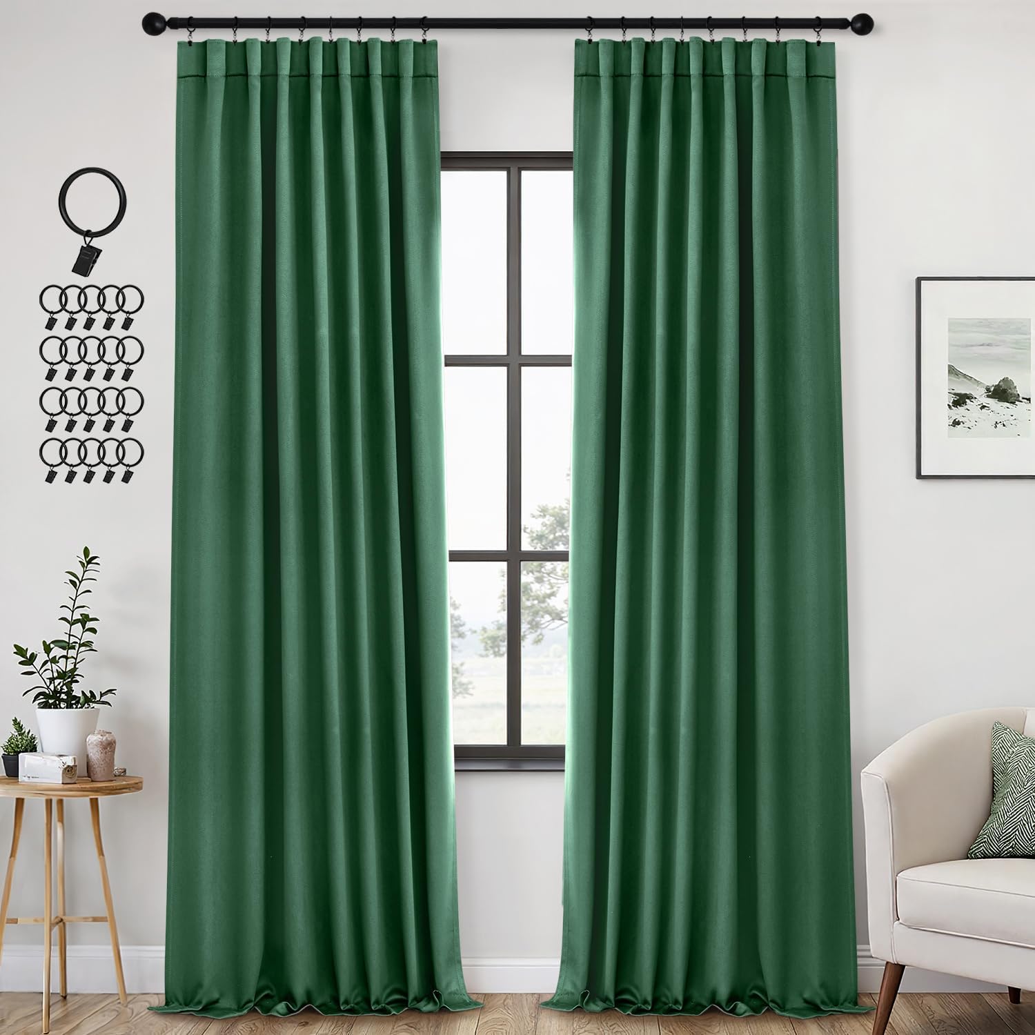 ANRODUO Back Tab Blackout Curtains for Bedroom Living Room, Rod Pocket Pinch Pleated Thermal Insulated Room Darkening Curtains 96 Inches Long 2 Panels, Hunter Green, 42 x 96 Inch