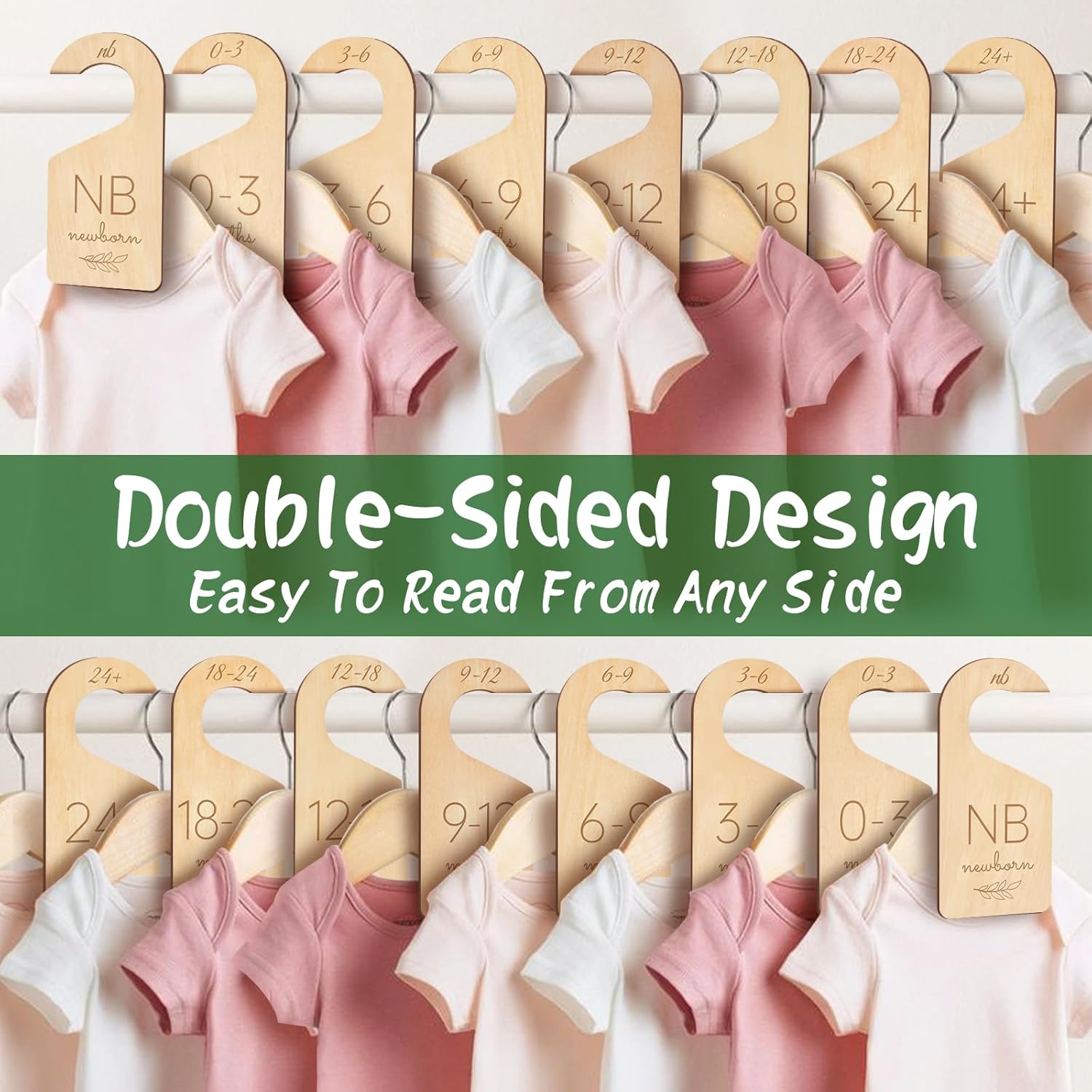 - Gender Neutral Dividers: Beautiful patterns are printed on the surface of each baby clothes dividers for closet with greenery style, with leaf elements and neutral wood design, classy wooden material goes well with any themed nursery organization
