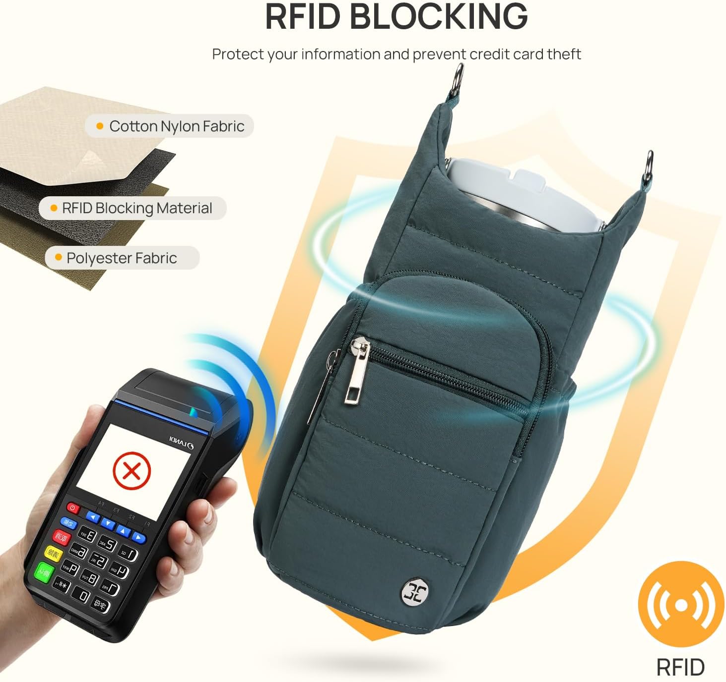 - Telena Water Bottle Bag: Made of high quality down fabric with adjustable vintage shoulder straps makes this water bottle holder classic yet stylish. The soft and waterproof down filled cotton material has better water and shock resistance while maintaining high softness and elasticity. Not only to prevent the water cup bump, but also wear light. Please note that this crossbody bag cannot be washed or machine washed