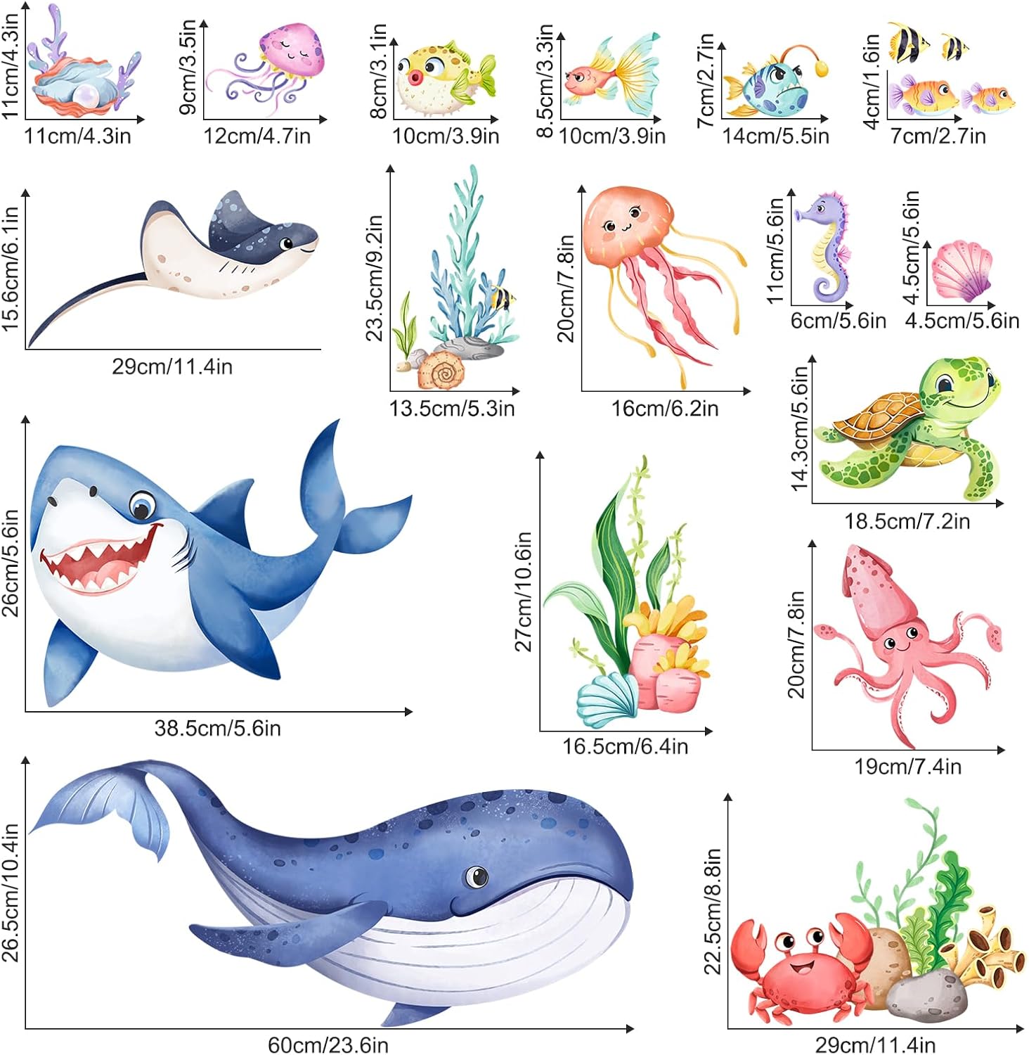 - 【Premium Quality Material】: Made from thick, durable vinyl, these marine life wall stickers are designed to last. They feature high-definition printing that ensures bright, vivid colors that won't fade over time.