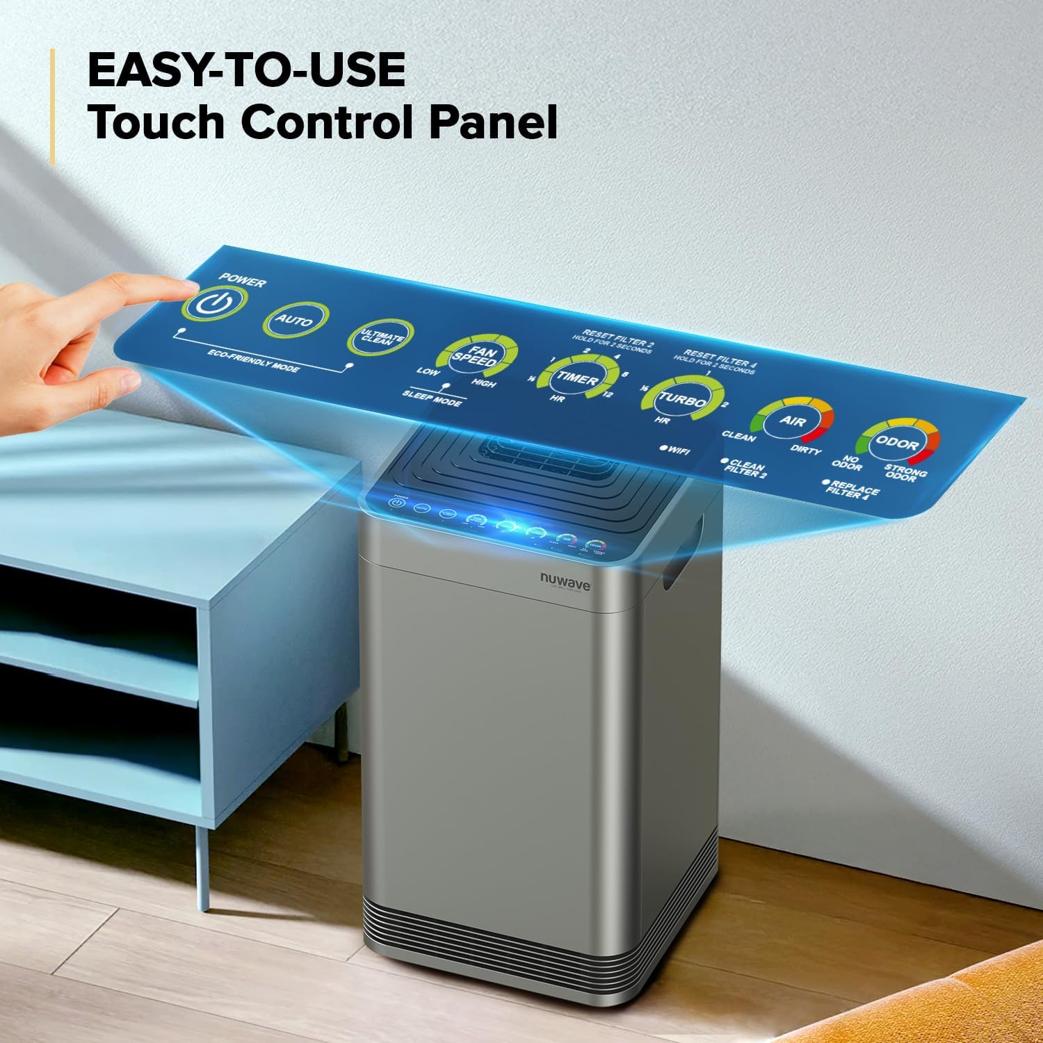 Nuwave Forever Plus Air Purifier for Home with Washable Filter, Massive Areas up to 3,210 Sq Ft, Never Replace Air Filter System, Zero Waste, Zero Filter Replacements, Smart WiFi, 18dB Ultra-Quiet
